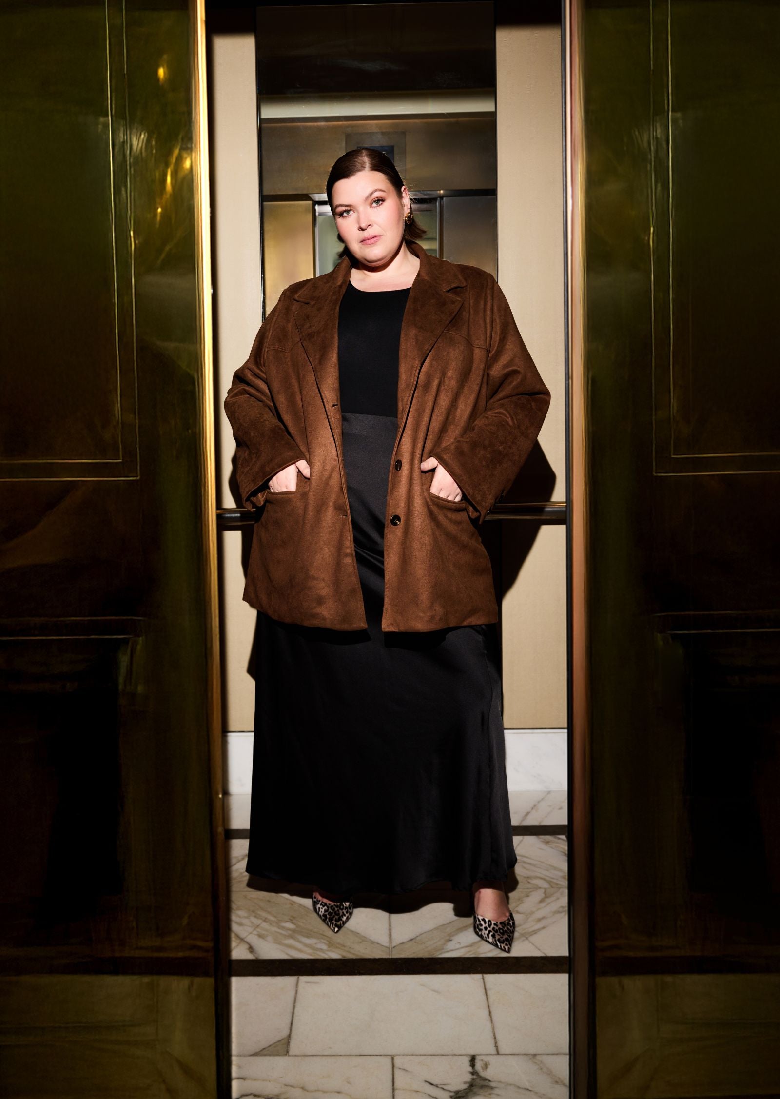 Meet the Adrien Blazer - a tailored staple with coastal cool. Designed for sizes 14-24, this walnut-toned blazer delivers smart structure and soft movement for modern power dressing.