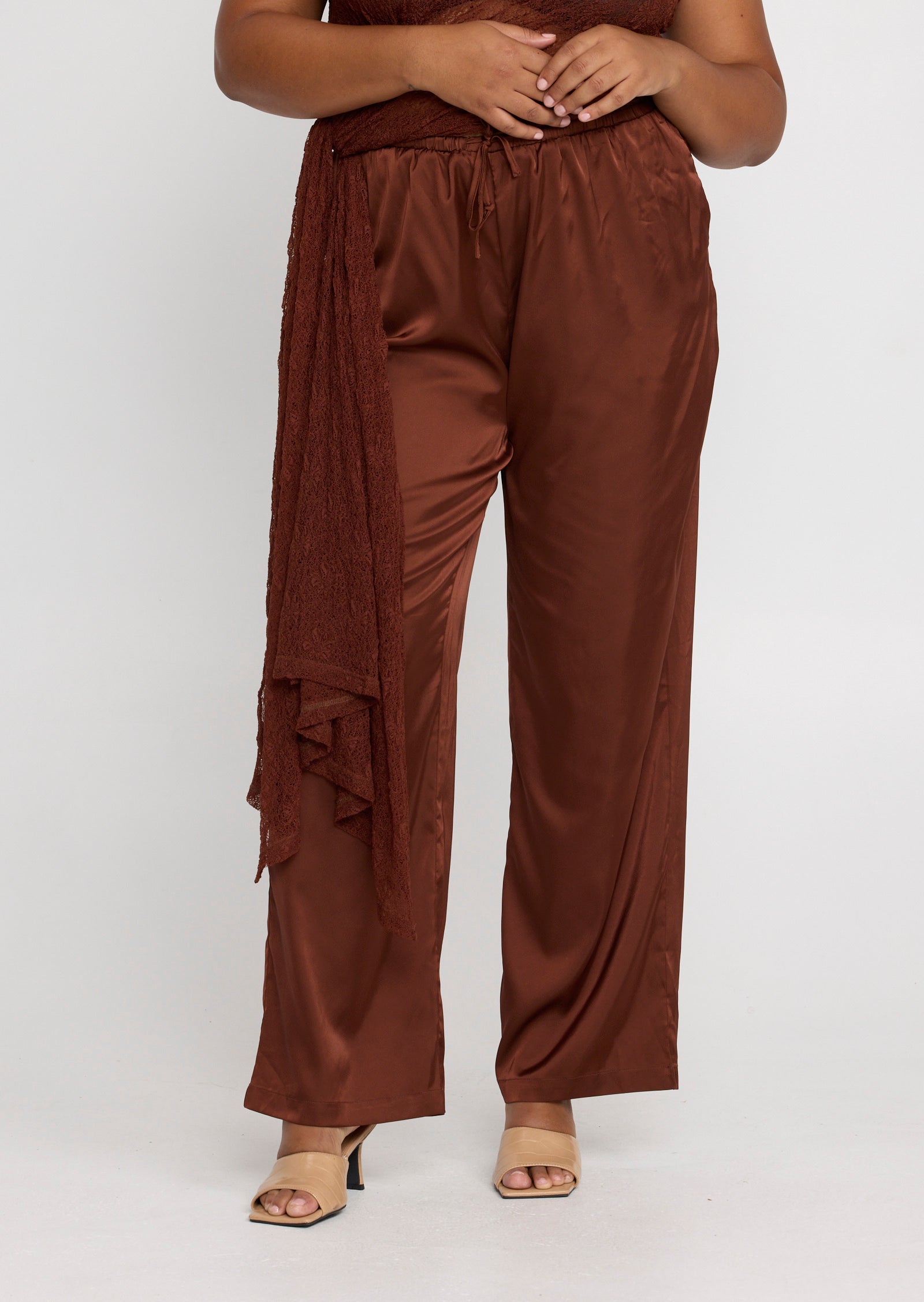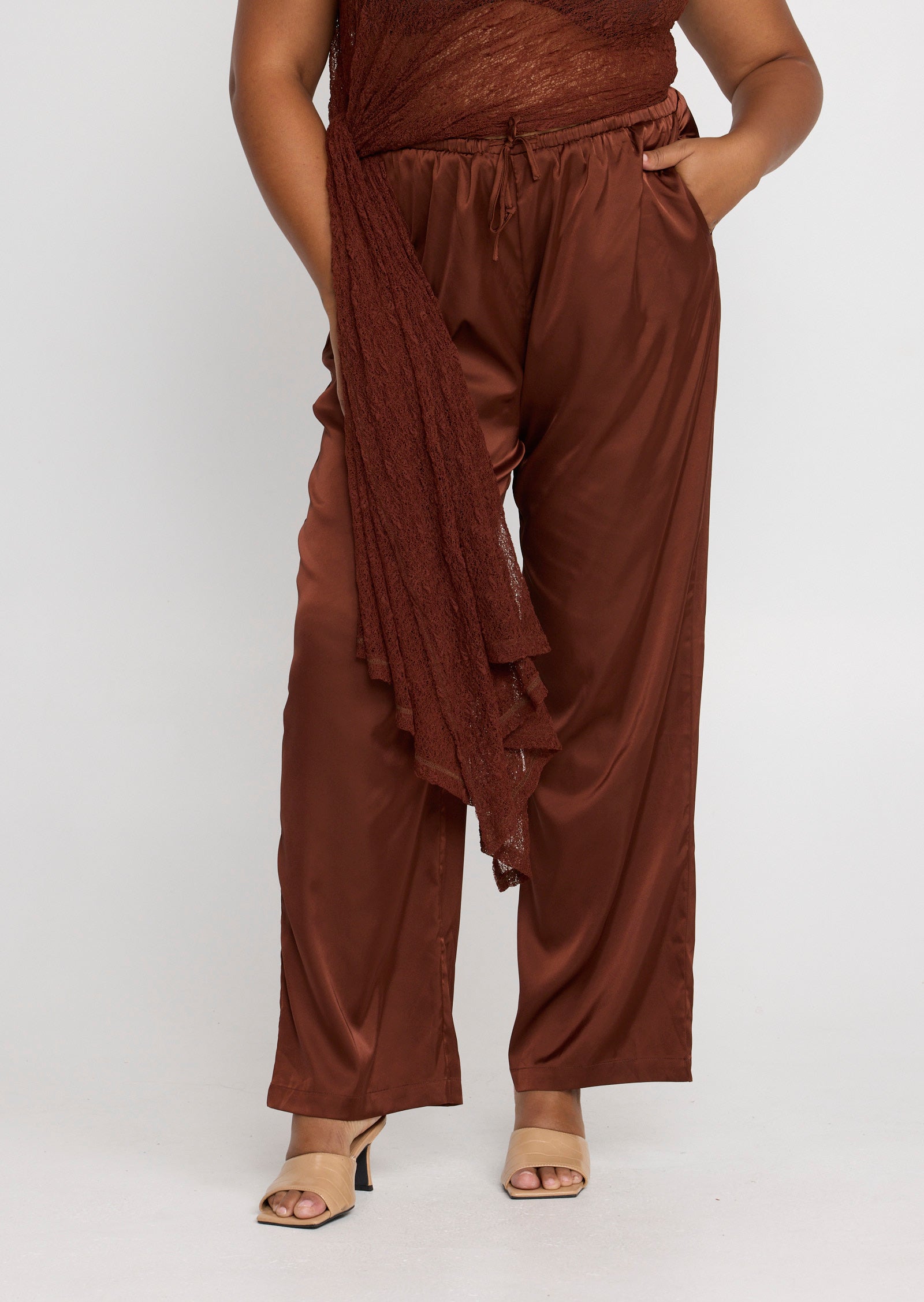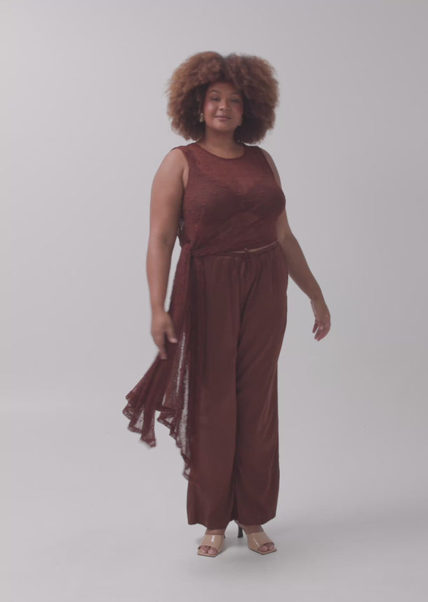 The Jolie Pant is a fluid, relaxed silhouette designed for sizes 14–24. Crafted to deliver effortless movement with a soft sheen finish, this elevated style drapes naturally over the body for a flattering, elongating effect.
