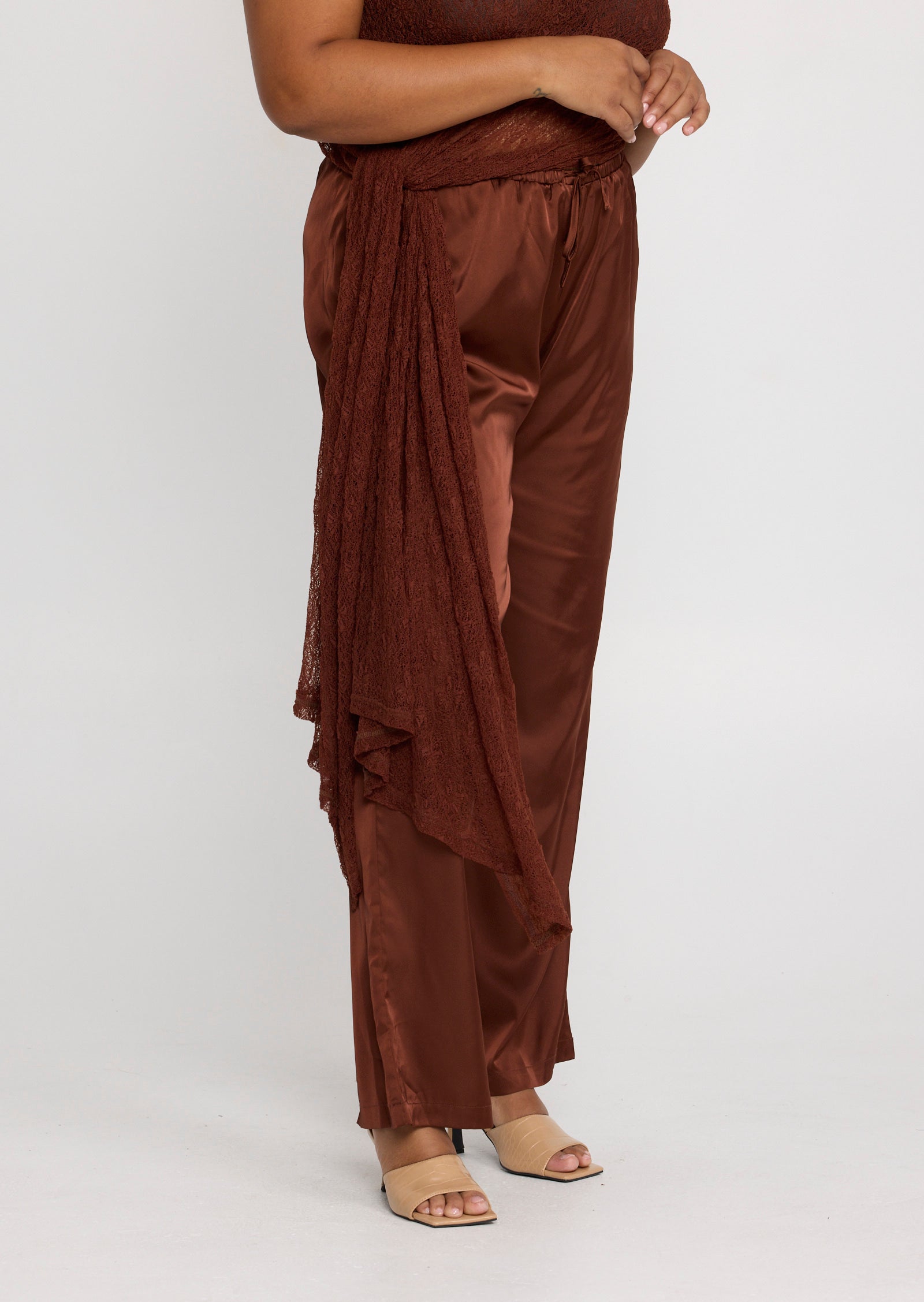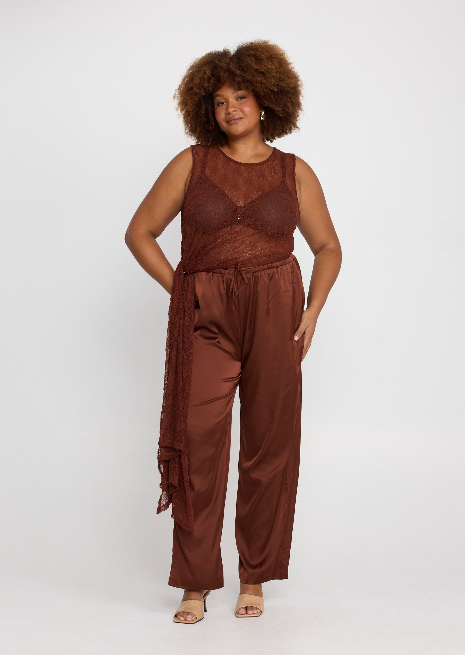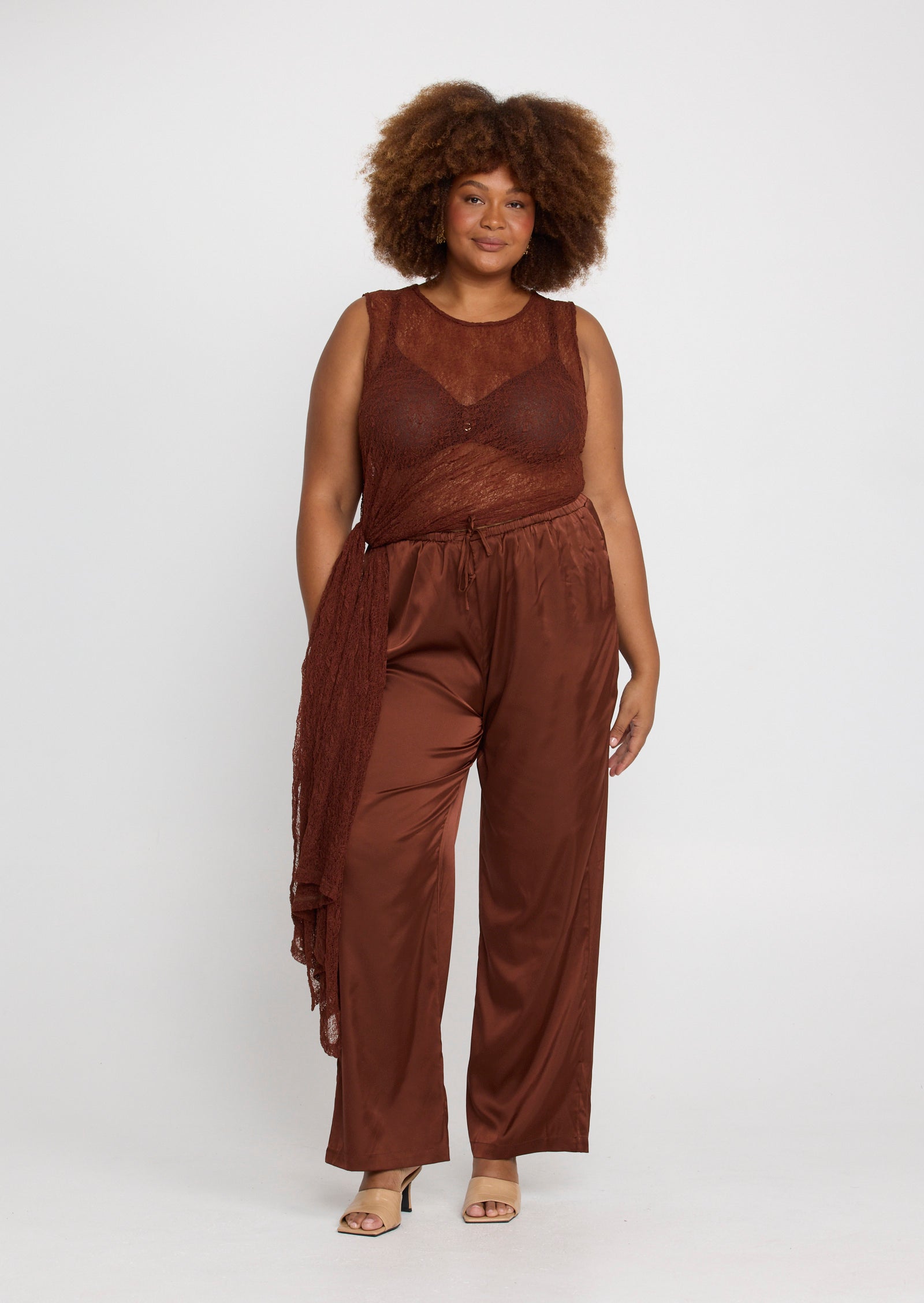 The Jolie Pant is a fluid, relaxed silhouette designed for sizes 14–24. Crafted to deliver effortless movement with a soft sheen finish, this elevated style drapes naturally over the body for a flattering, elongating effect.
