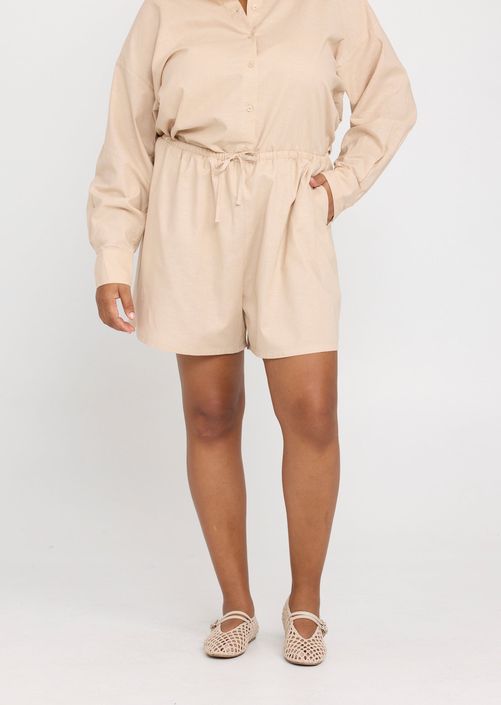 Designed in a breathable cotton linen blend, Callie features an elasticated waistband with an adjustable drawcord for a flexible fit. Side pockets add everyday functionality, while the soft structure and subtle texture create an effortless, refined finish.