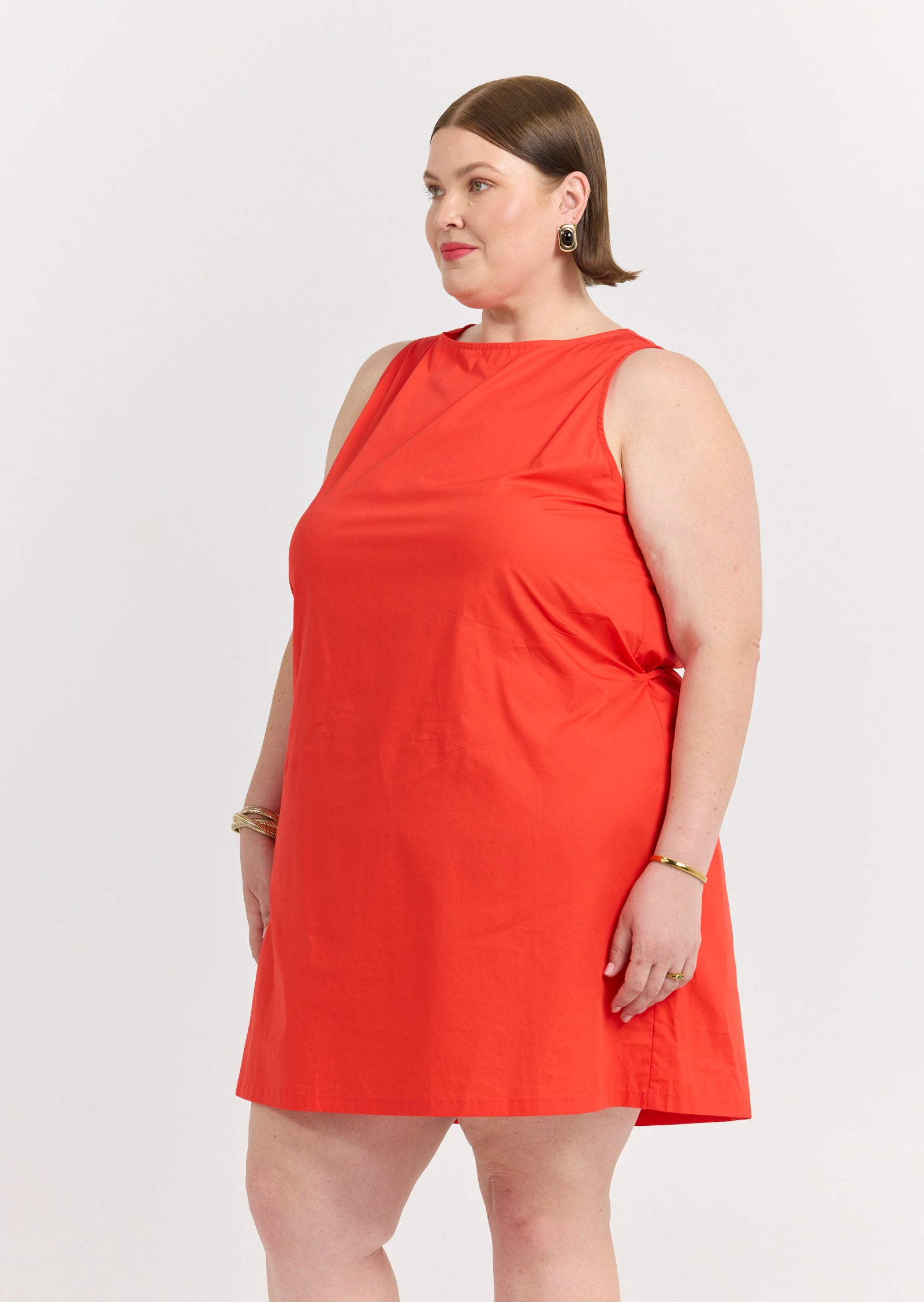 Falling to a mini length, the Evangeline Dress creates a clean, confident silhouette that moves gracefully with the body. The refined simplicity of its design makes it versatile enough to wear from day to evening with just a change of accessories.