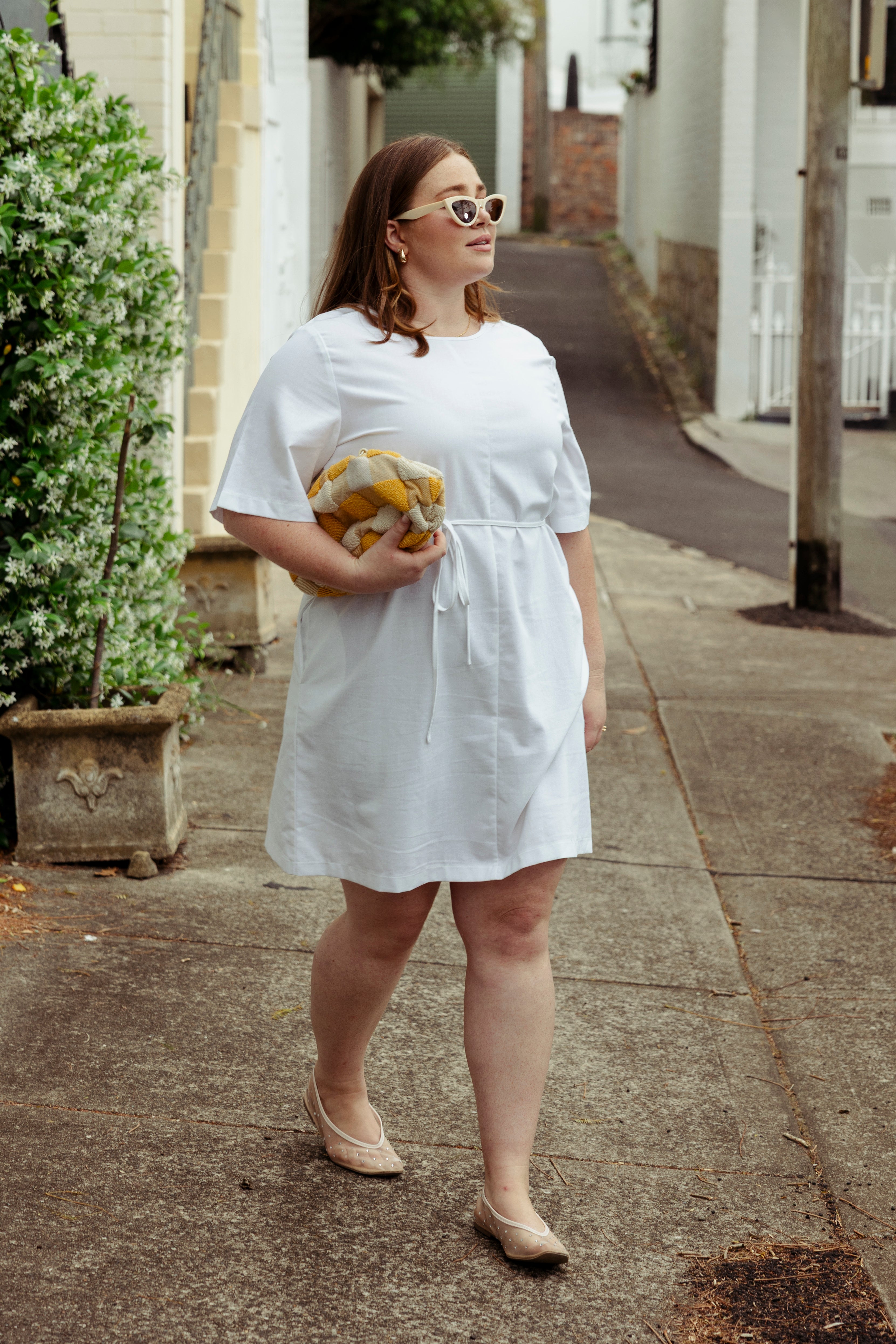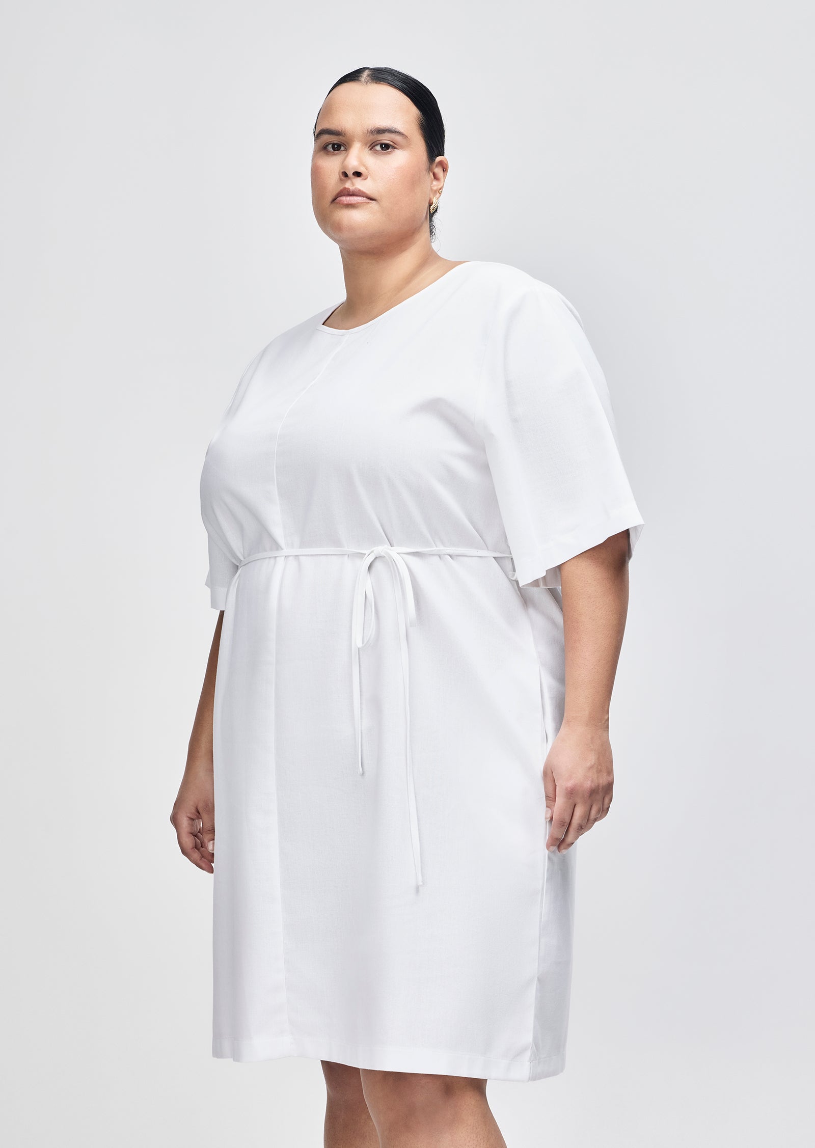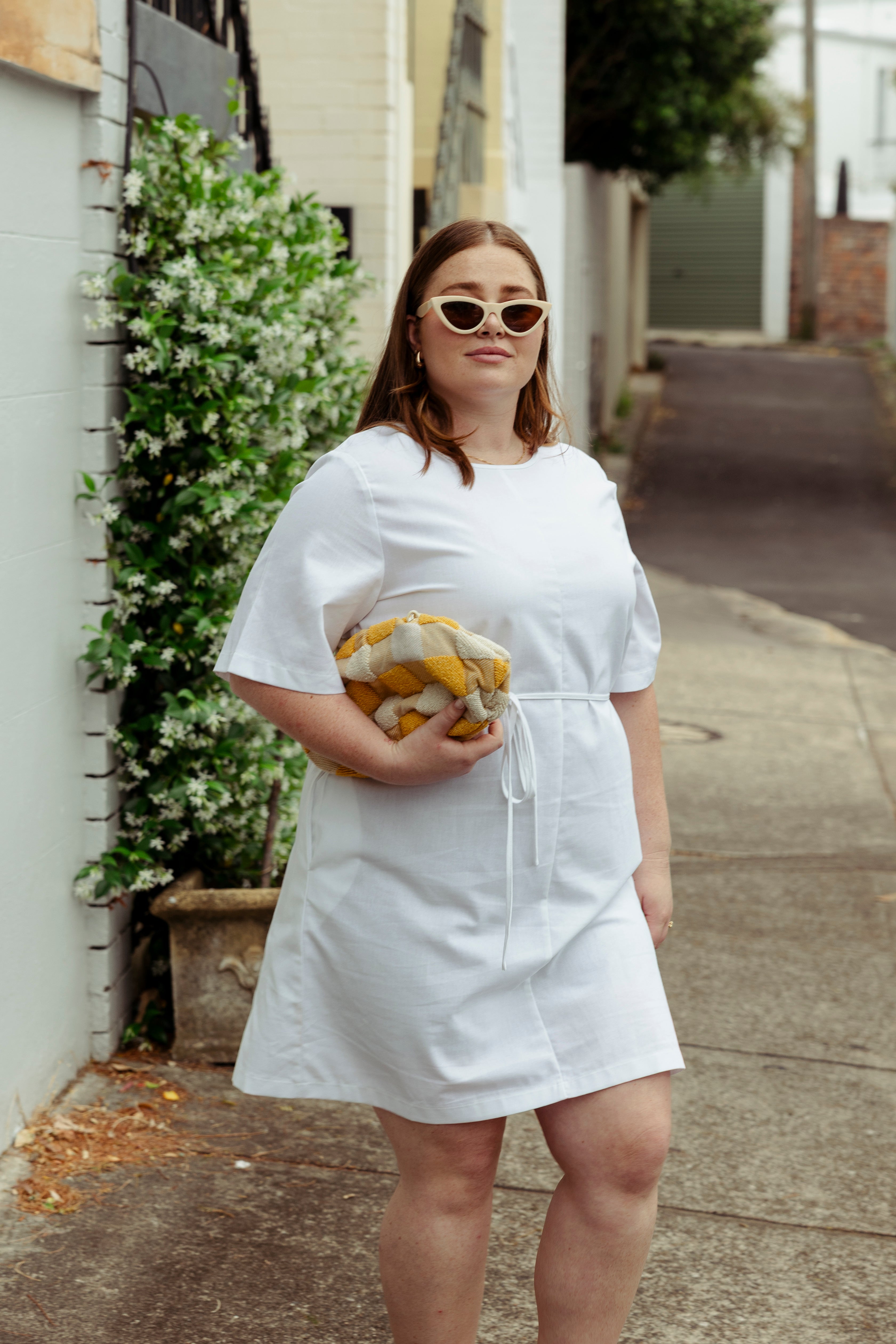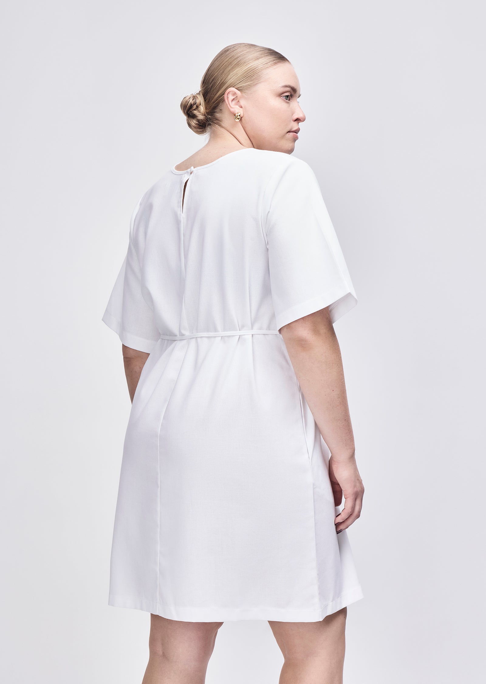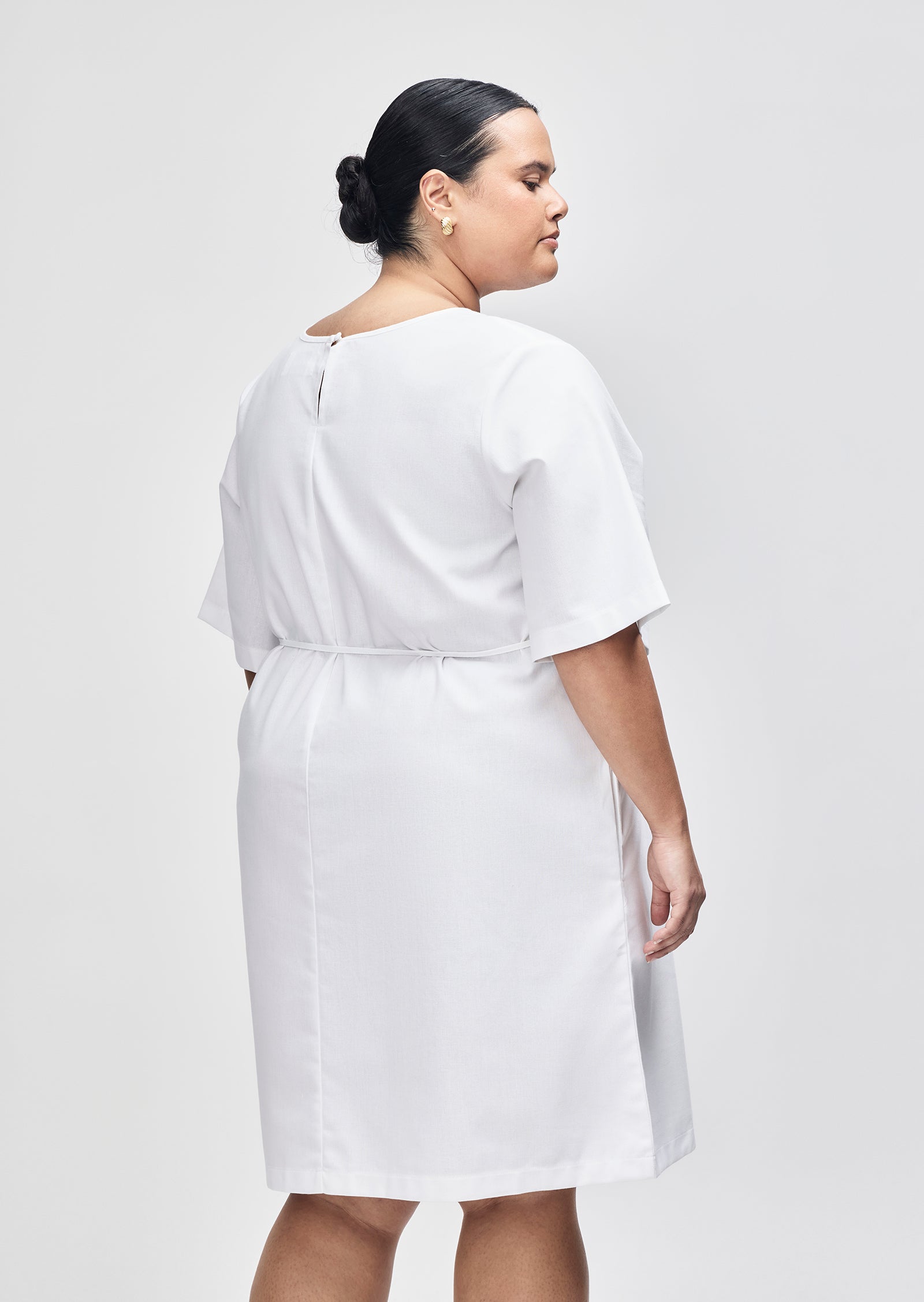 Meet the Lucienne Mini Dress — a relaxed A-line silhouette with soft volume and easy shape. Designed for sizes 14–24, this unlined style features a mini length, elbow-length sleeves, and a gentle drape through the body.