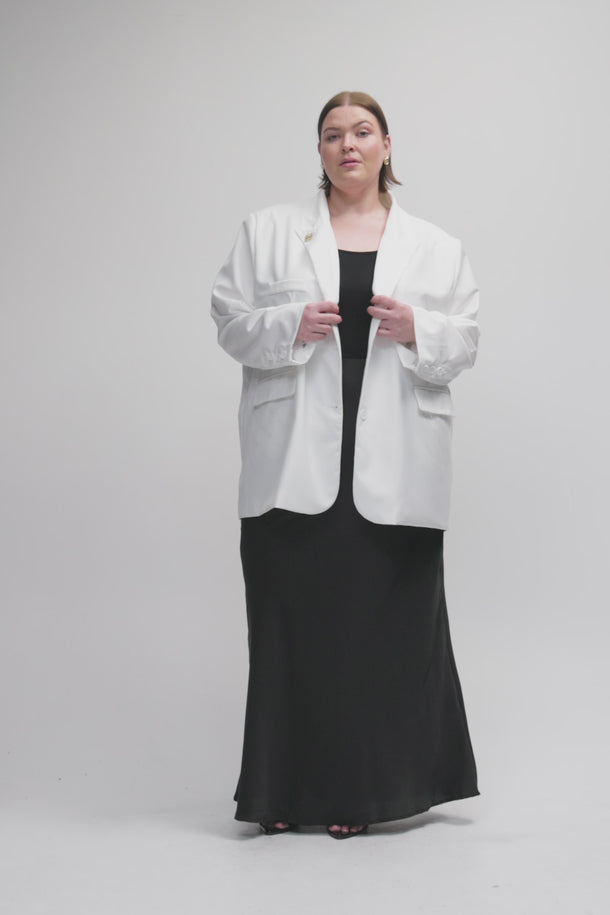 Meet the Riviera Boyfriend Blazer - an oversized classic with modern edge. Designed for sizes 14-24, this longline blazer delivers relaxed tailoring and coastal polish in one versatile piece.