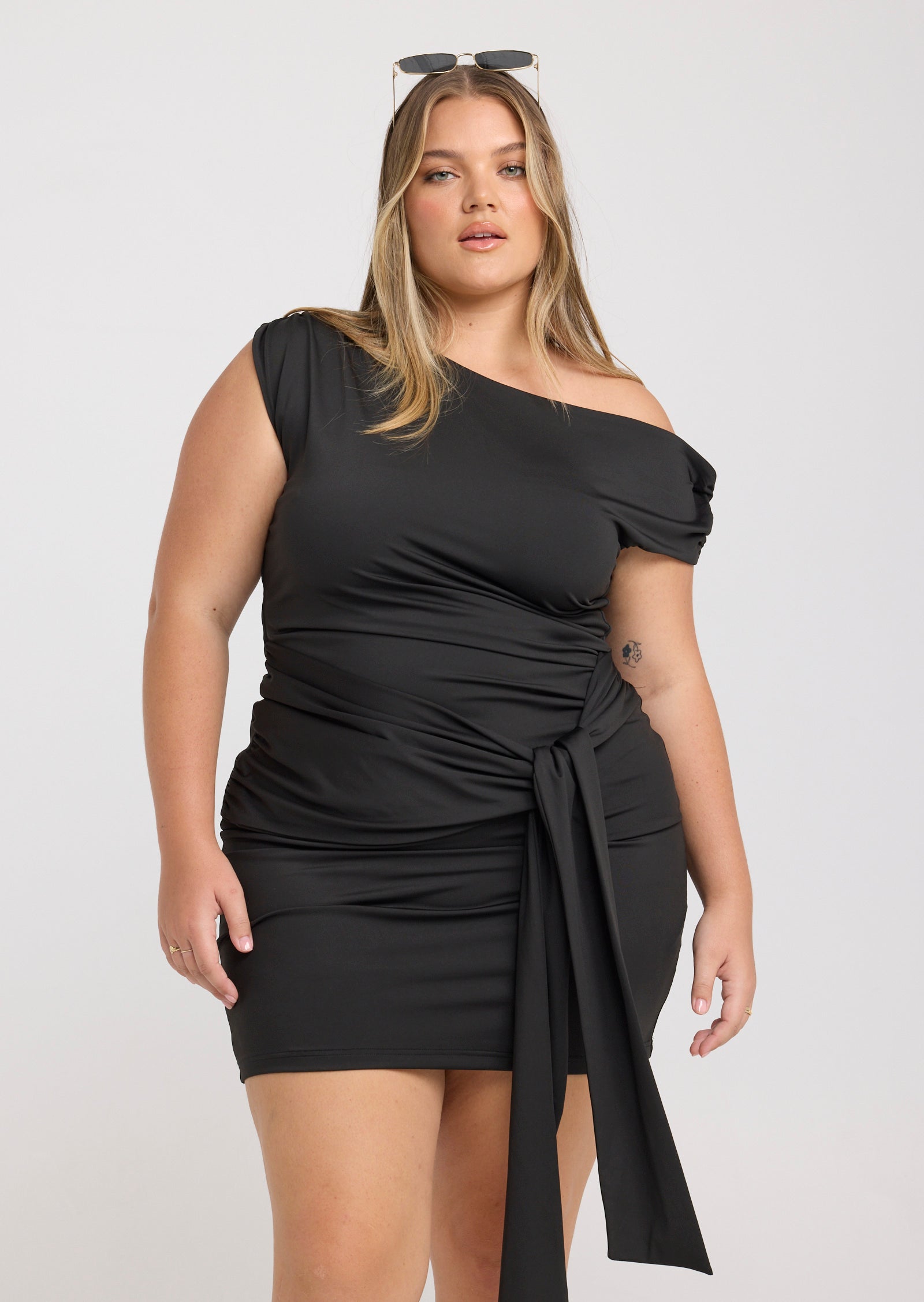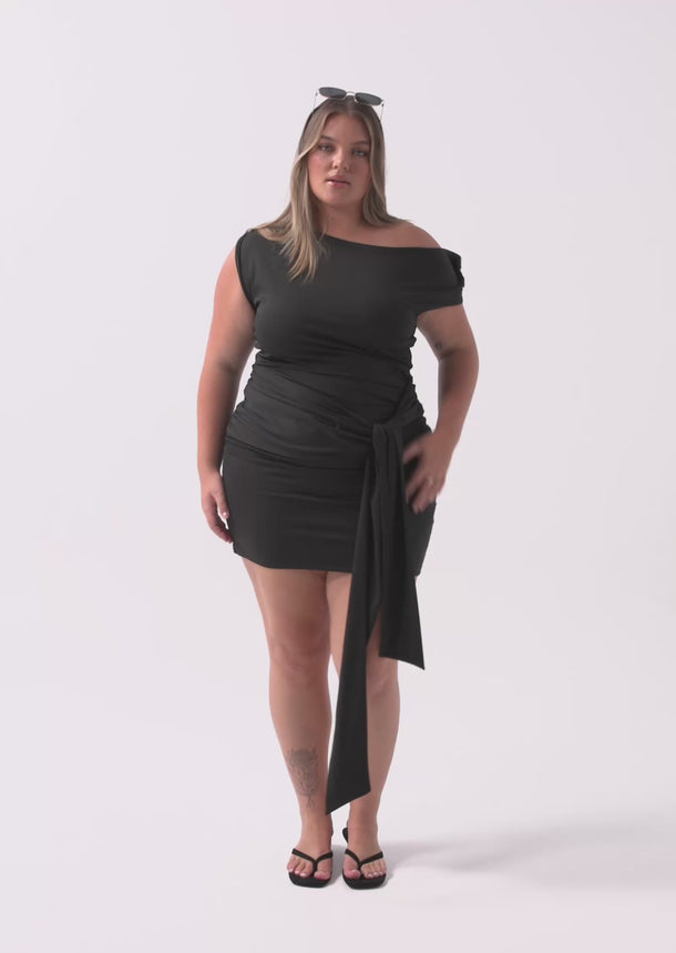 Crafted from a soft stretch fabric, Elke features an asymmetrical neckline with gathered detailing through the bodice for subtle visual interest. A matching waist tie allows you to define the silhouette or wear it loose for a more relaxed feel, while the fabric holds its shape without compromising comfort.