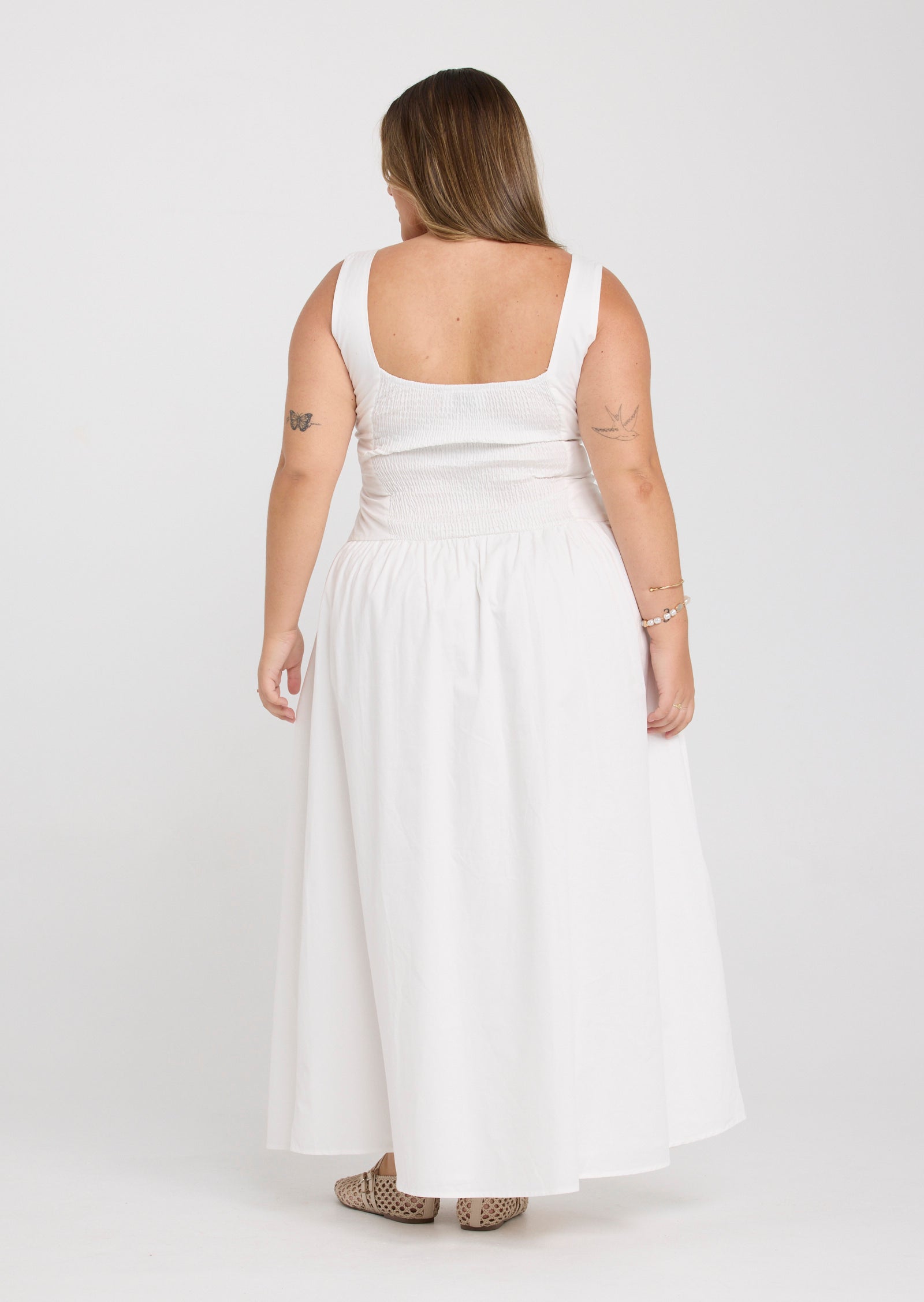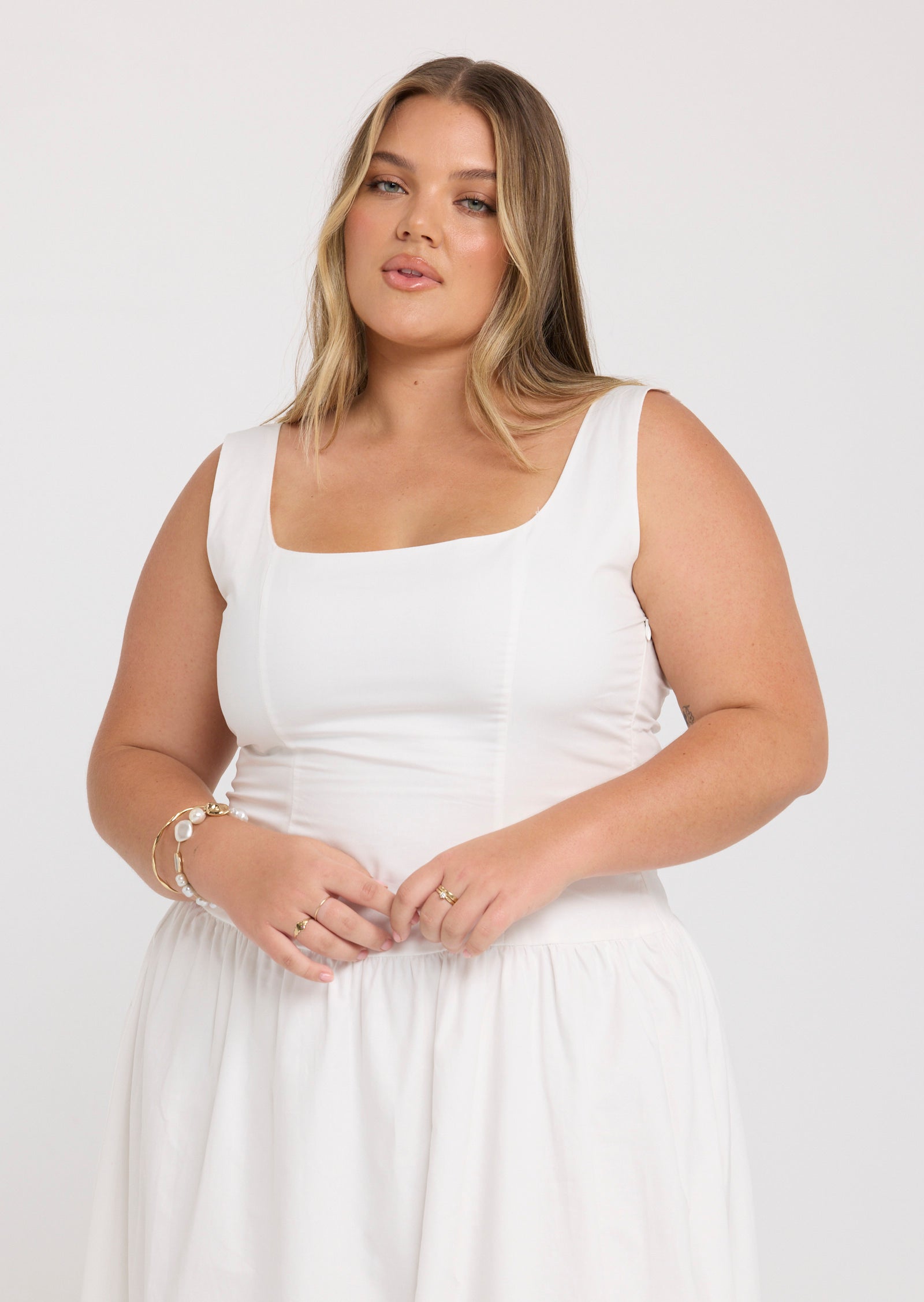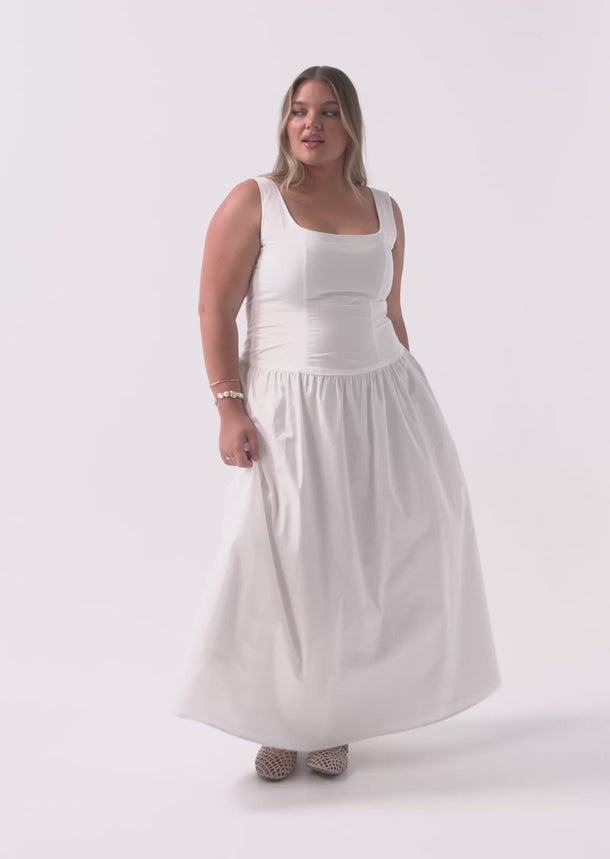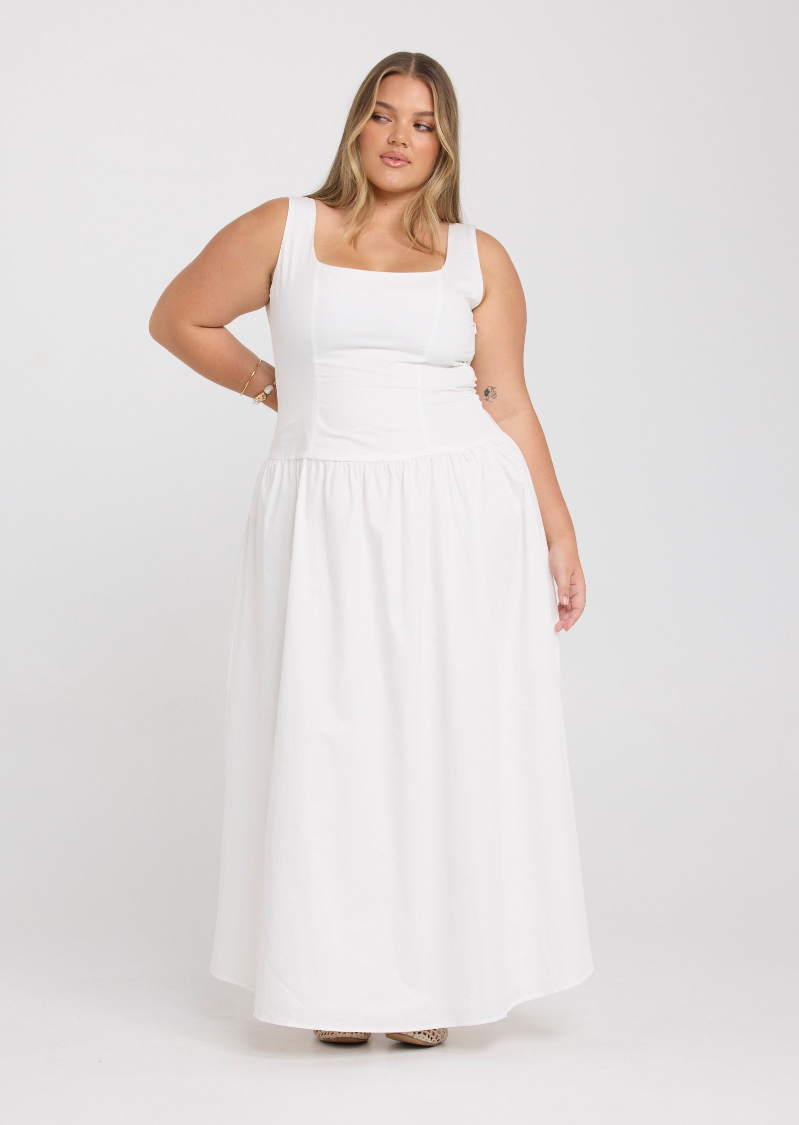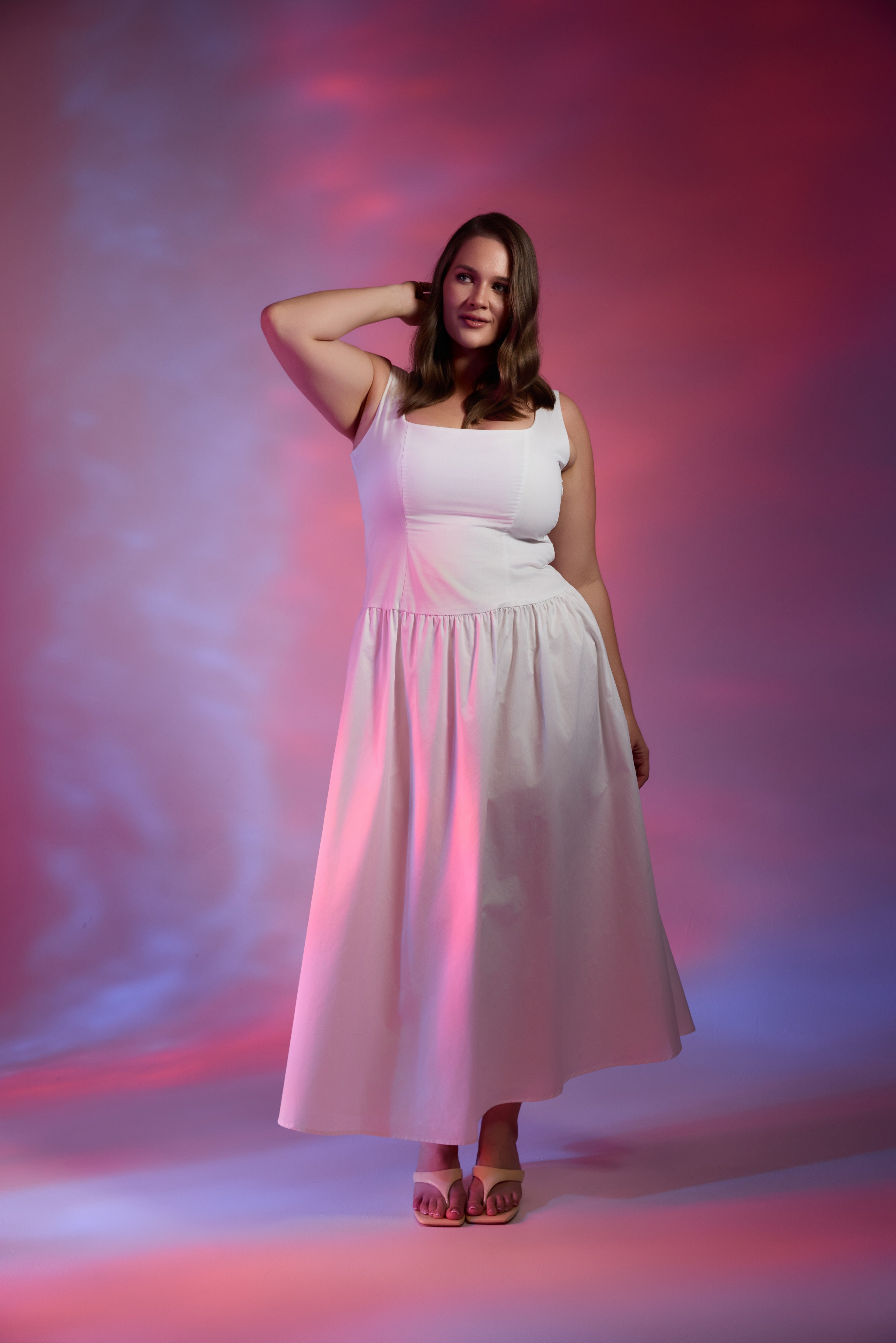 The Elle Maxi Dress is a modern take on timeless femininity, designed for sizes 14–24. Featuring a structured square neckline and softly contoured shaping, it delivers an elevated silhouette with effortless wearability.