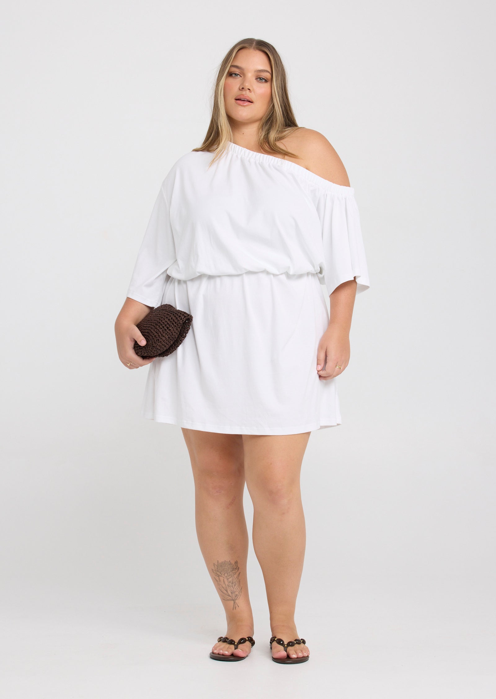 Featuring an off-shoulder neckline and an elasticated waistband, Jada balances laid-back wearability with a flattering fit. The soft stretch fabric moves with you, making it an easy choice for warm days, casual outings, or relaxed weekends.