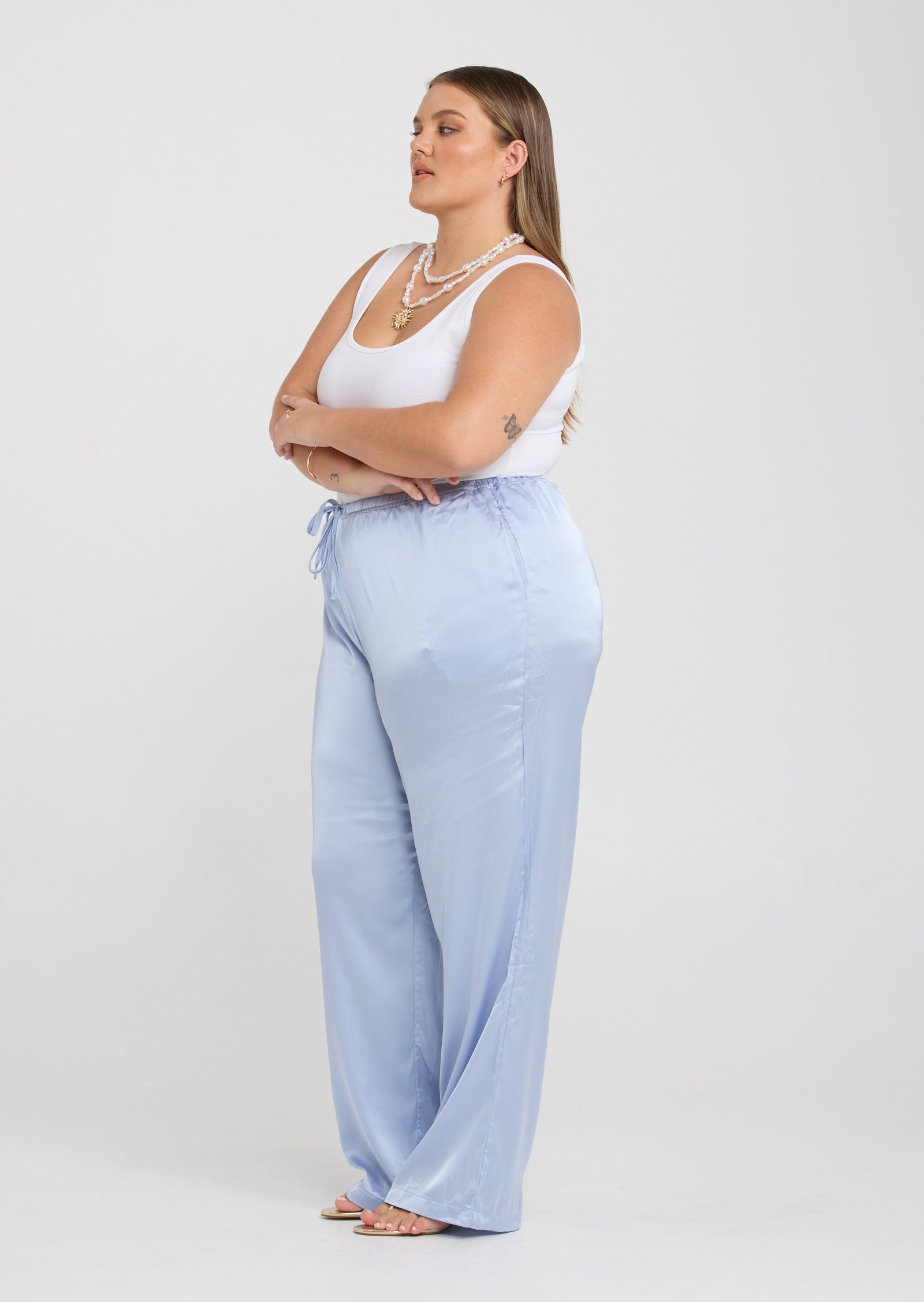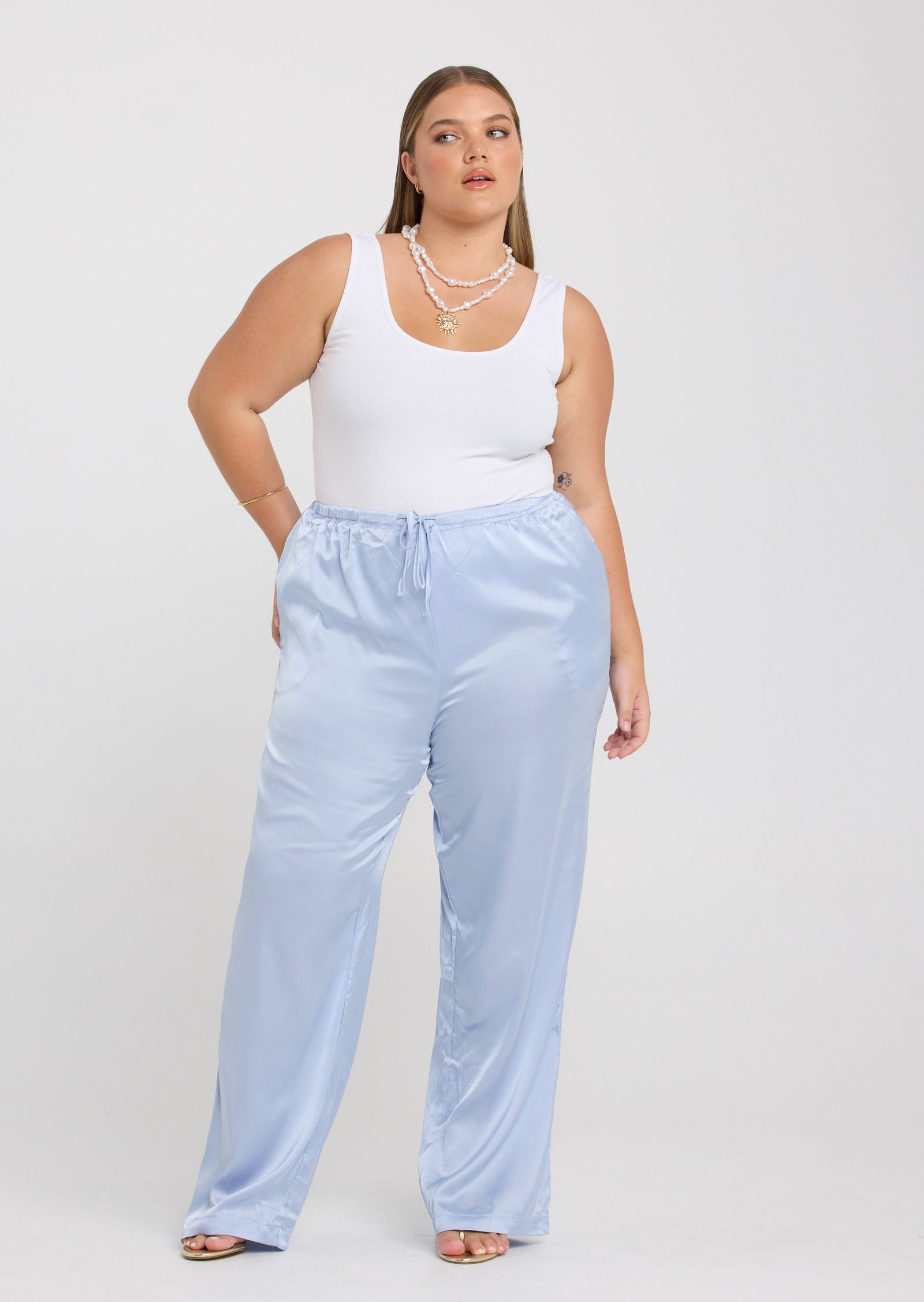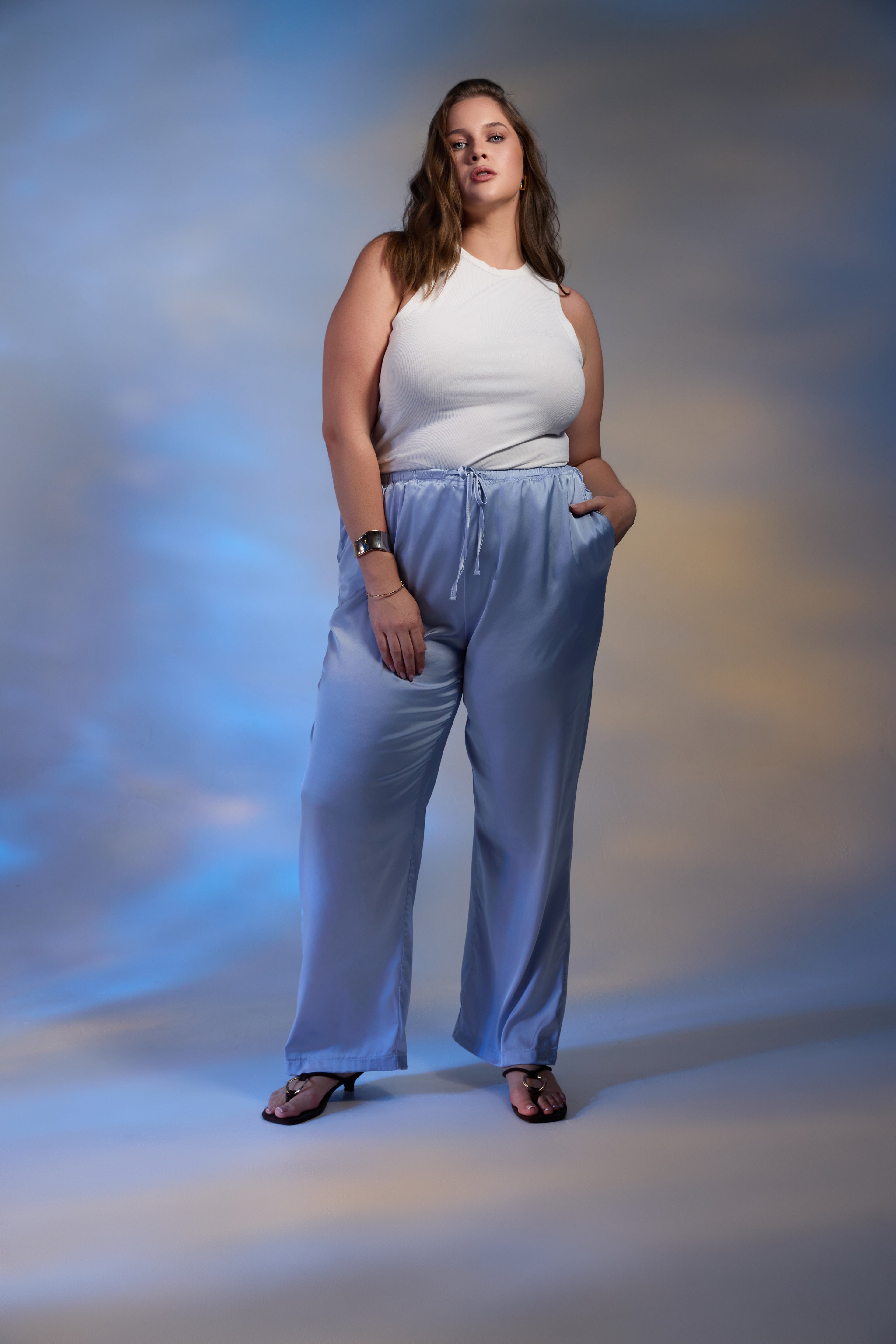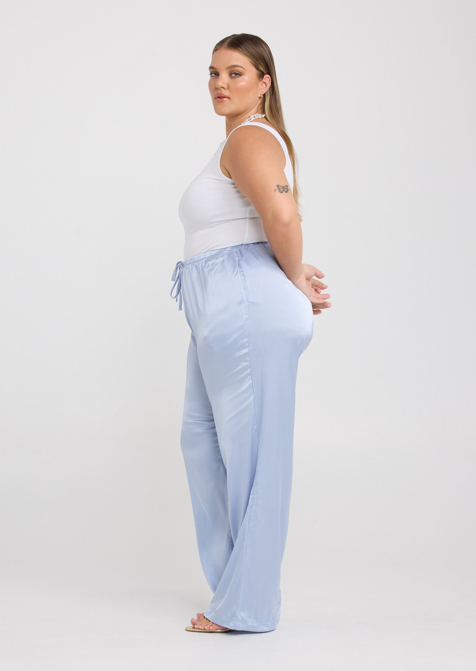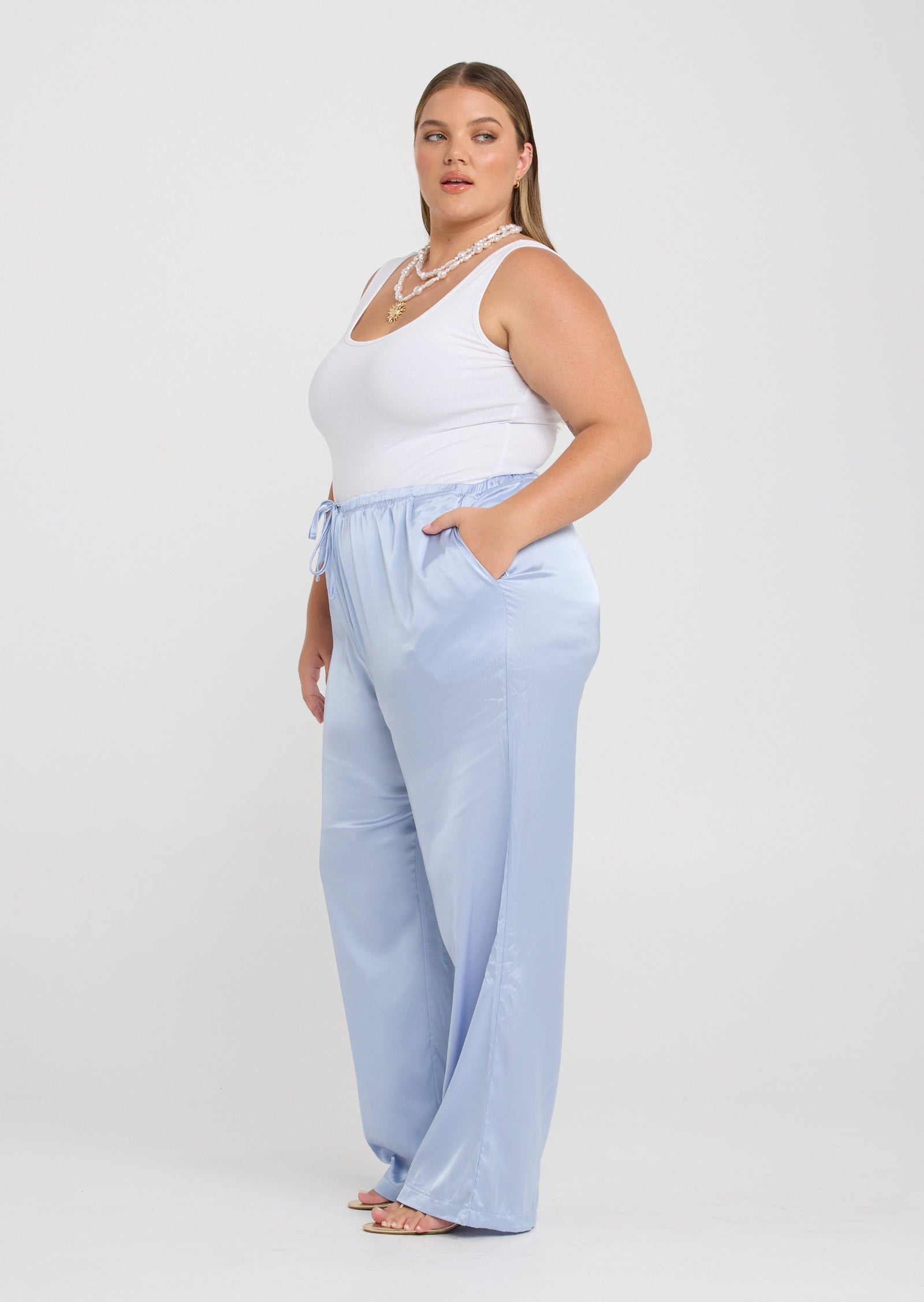 The Malia Pants in Baby Blue are an elevated essential designed for comfort and effortless style, created for sizes 14–24. With a relaxed silhouette and fluid drape, they offer a polished look that feels easy to wear.