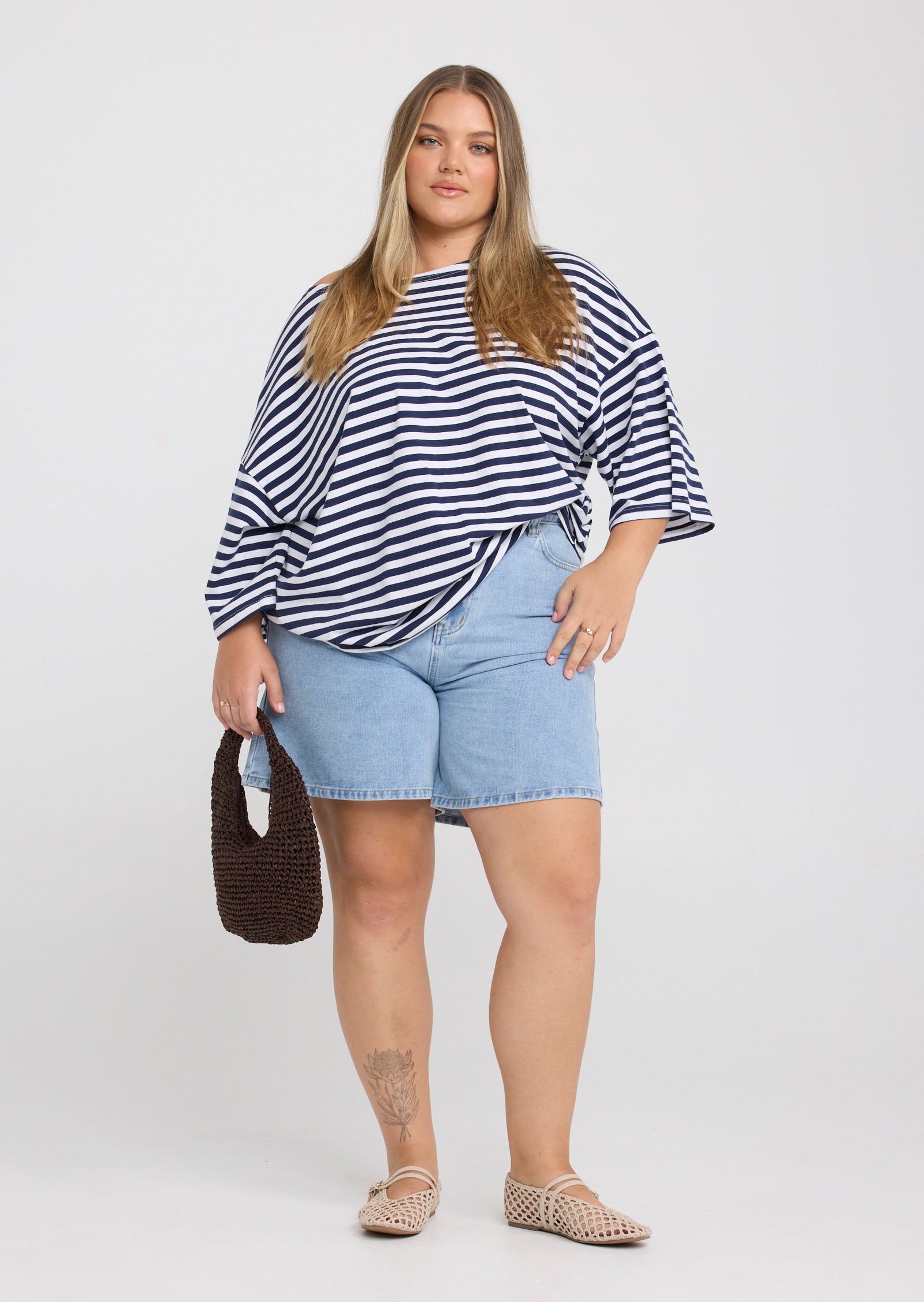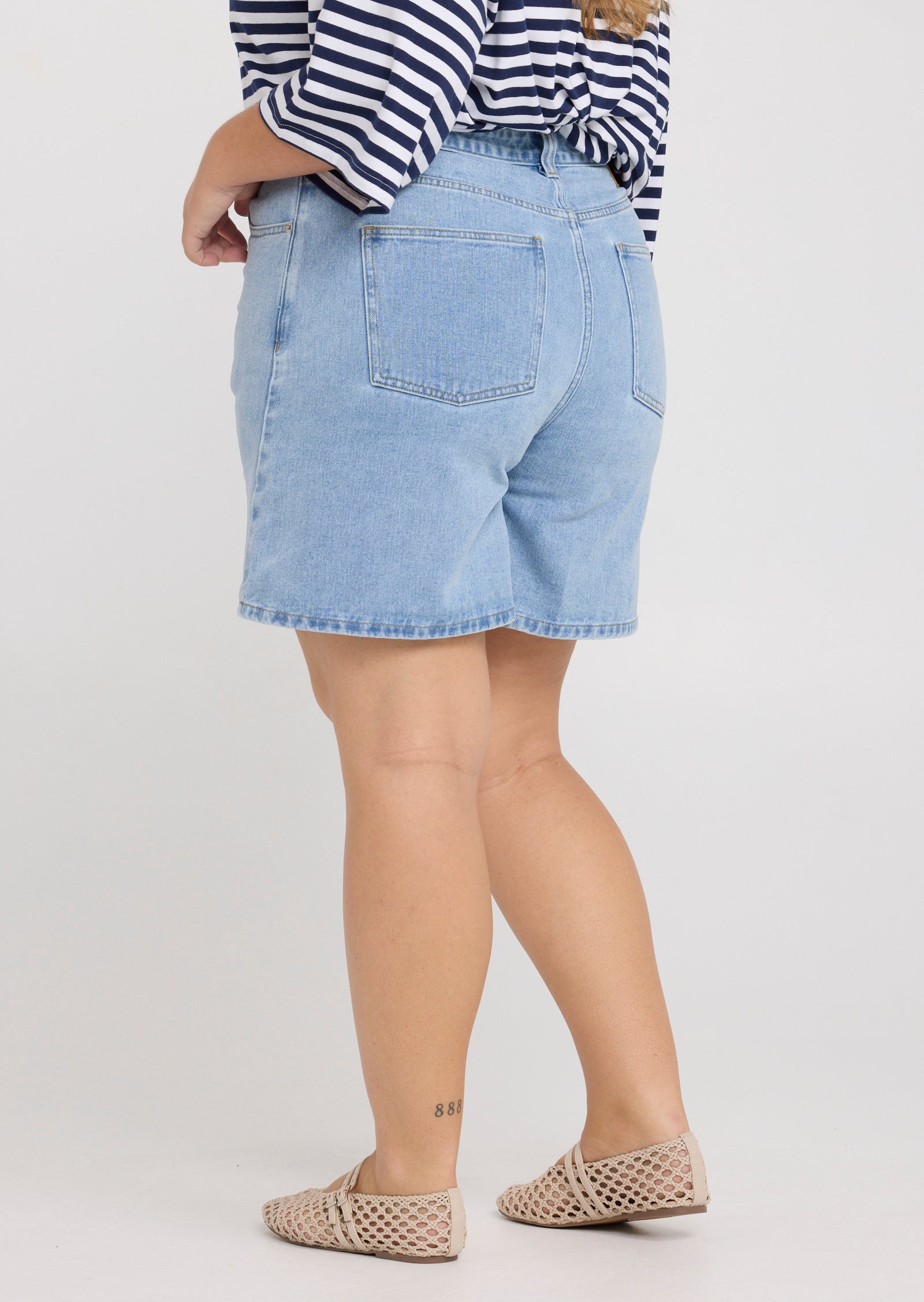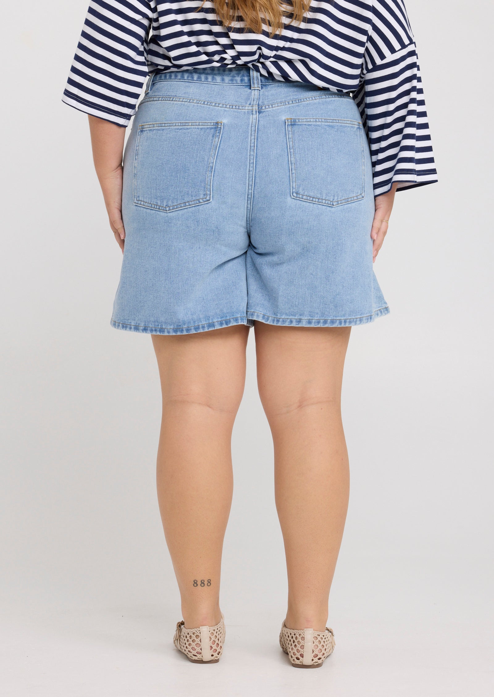 The Nell Denim Shorts in Light Wash are a warm-weather essential designed for sizes 14–24. Featuring a fitted high waist and a wide leg silhouette, they offer a modern take on classic denim while maintaining an easy, flattering fit.