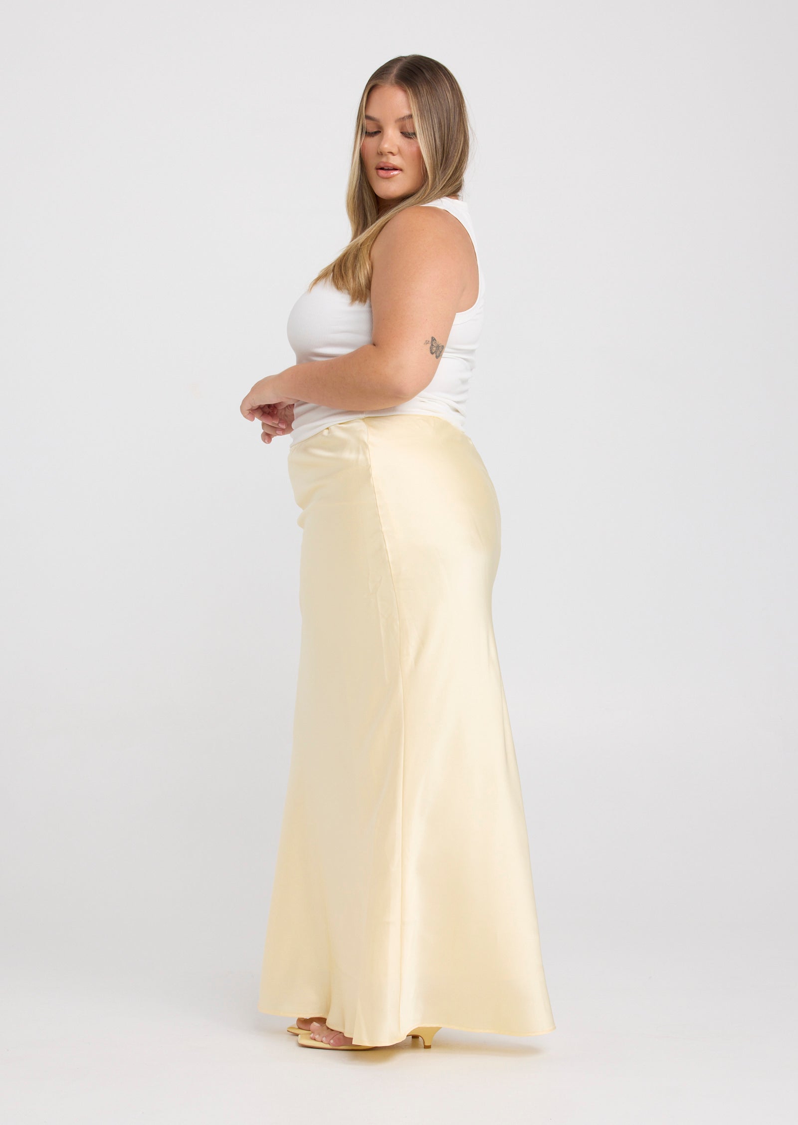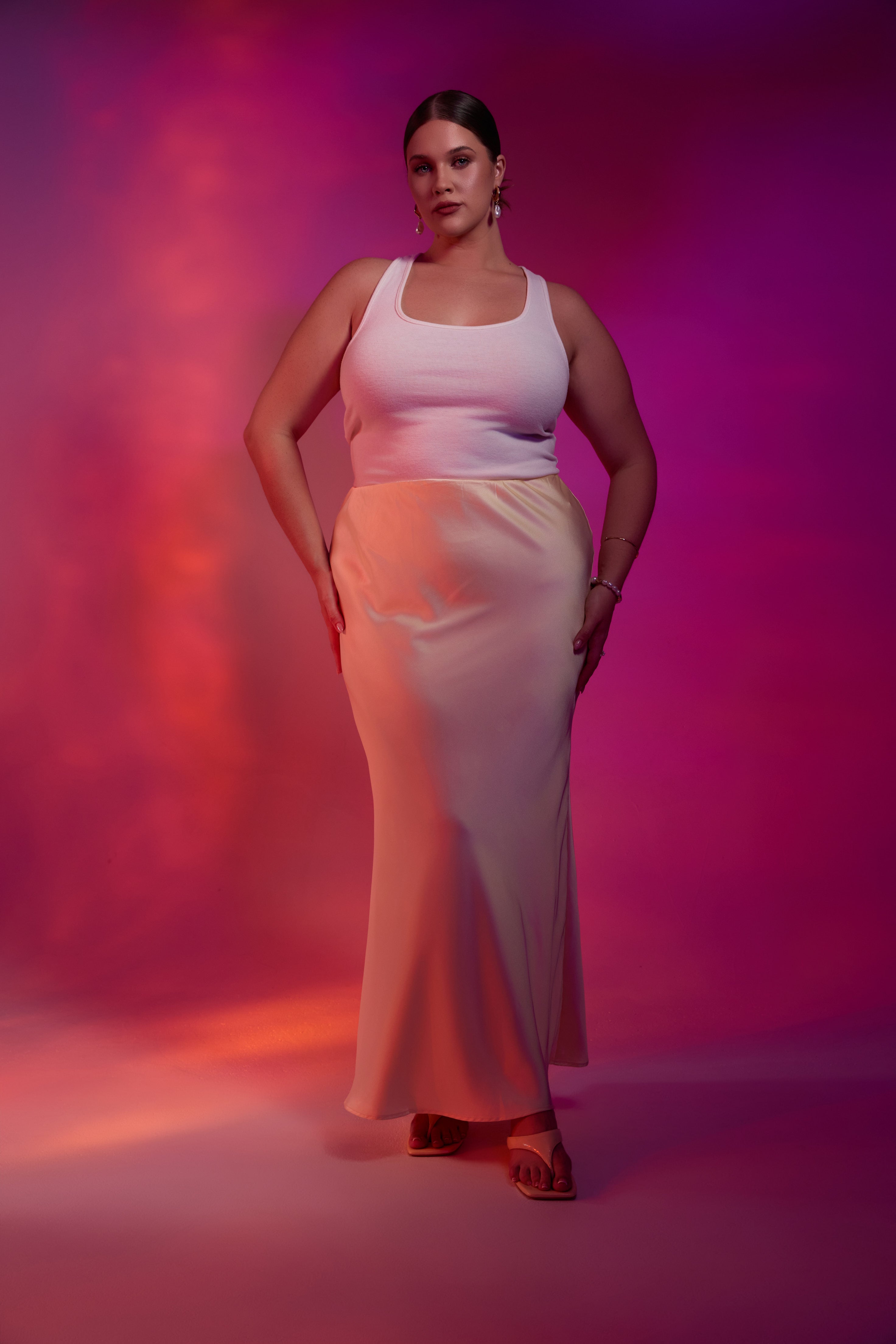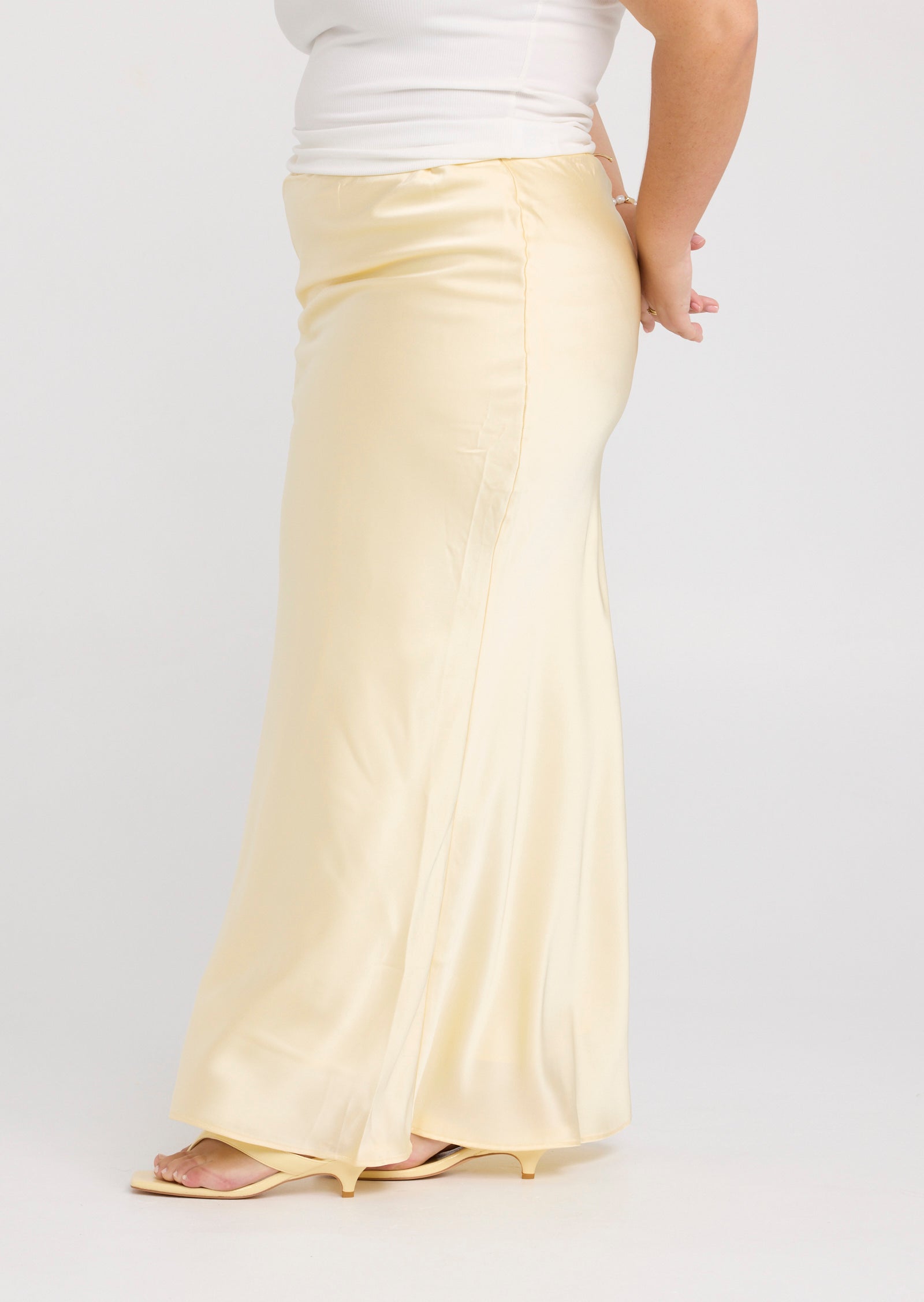 The Pia Skirt is a timeless satin style designed to move beautifully with the body. Cut on the bias, it creates a soft, fluid silhouette that skims the hips and falls effortlessly to a flattering maxi length.