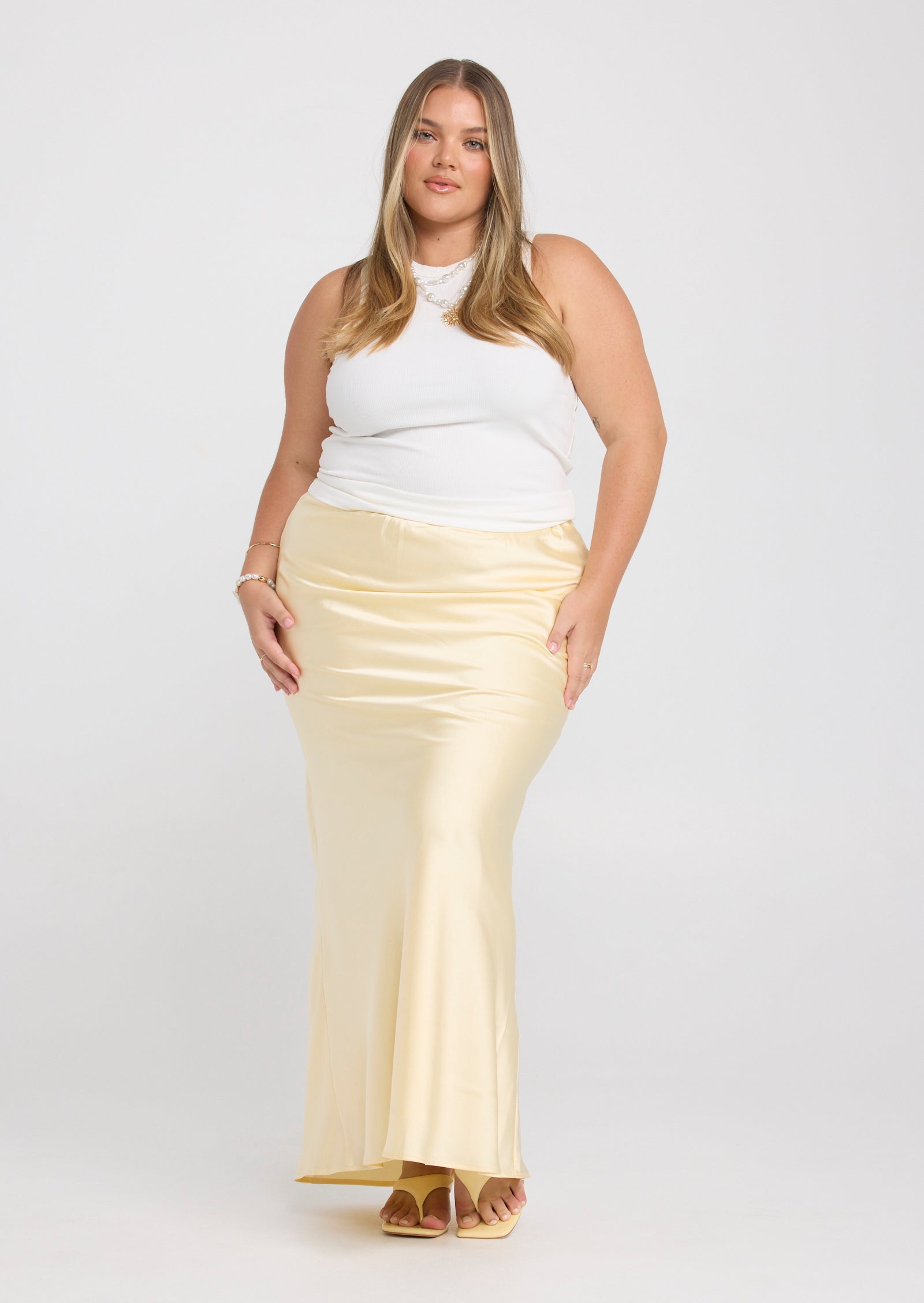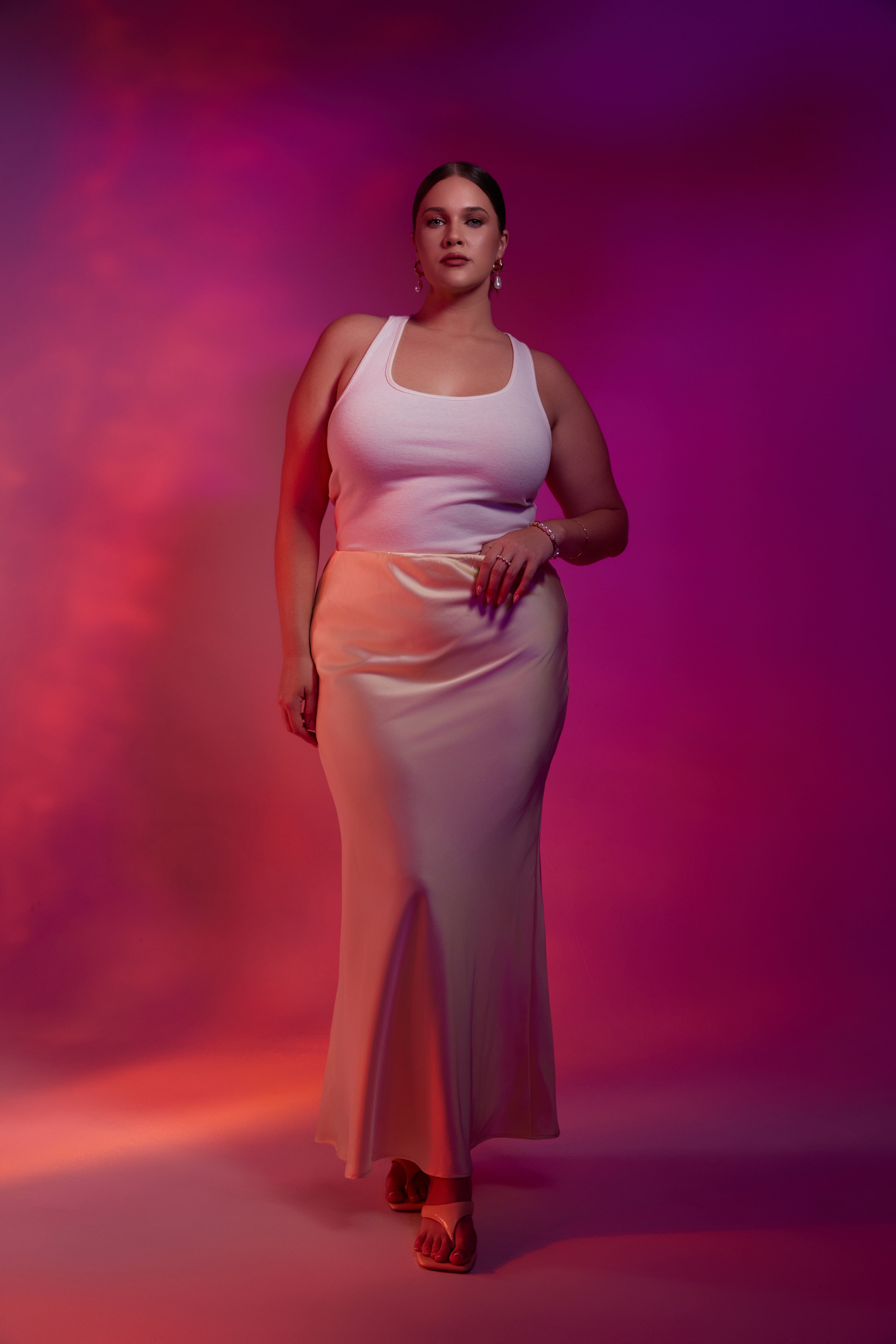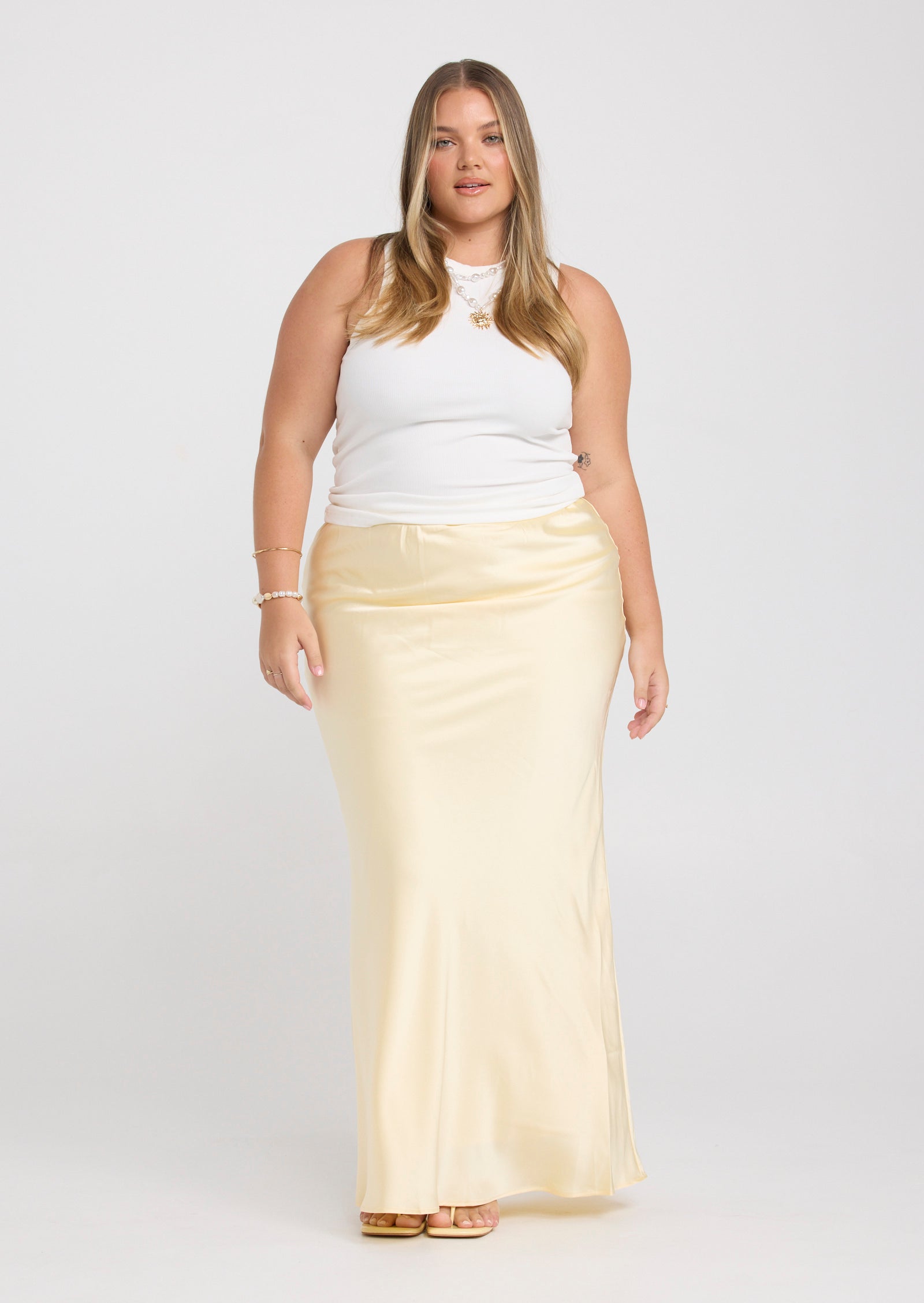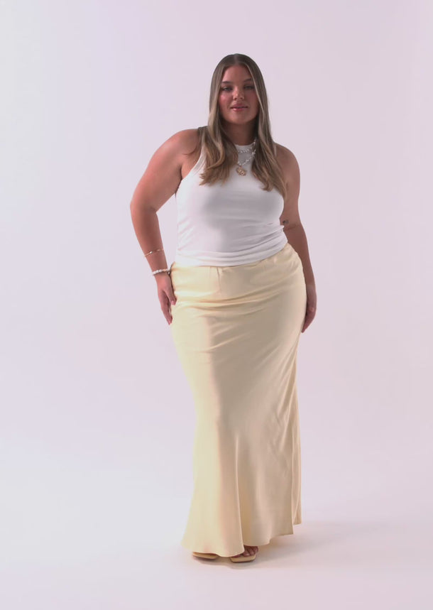 The Pia Skirt is a timeless satin style designed to move beautifully with the body. Cut on the bias, it creates a soft, fluid silhouette that skims the hips and falls effortlessly to a flattering maxi length.