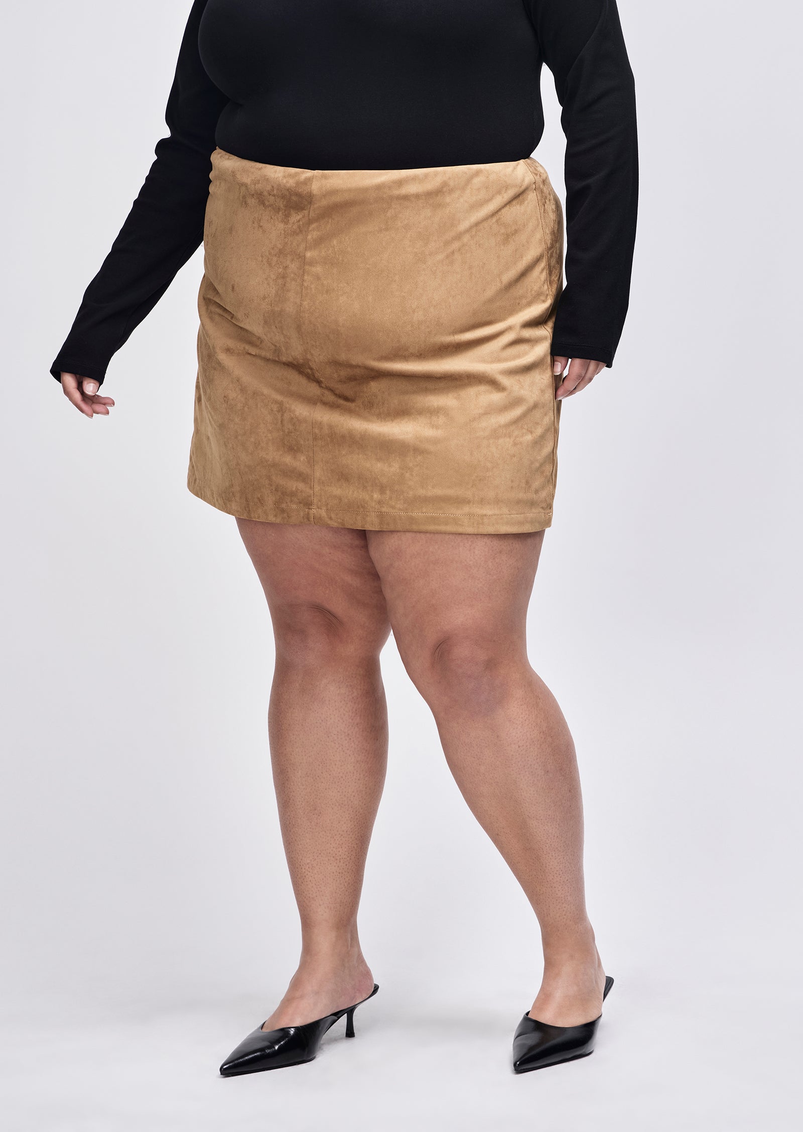 Meet the Vincent Mini Skirt — a sharp, structured mini designed for clean lines and confident dressing. Made for sizes 14–24, this fitted silhouette sits at a mid rise and offers a tailored feel with minimal fuss.