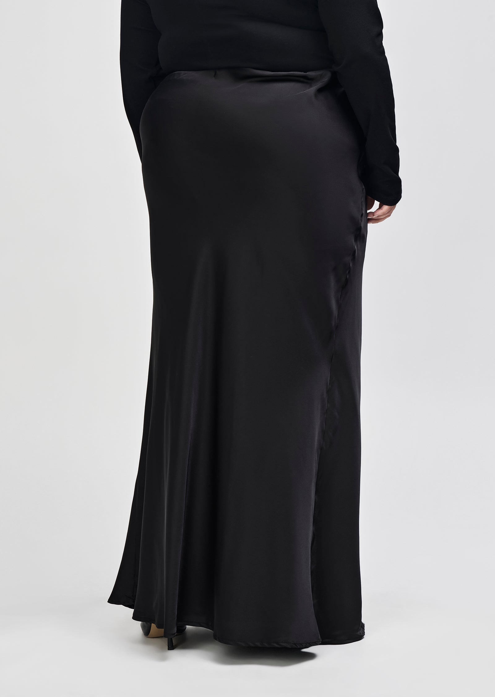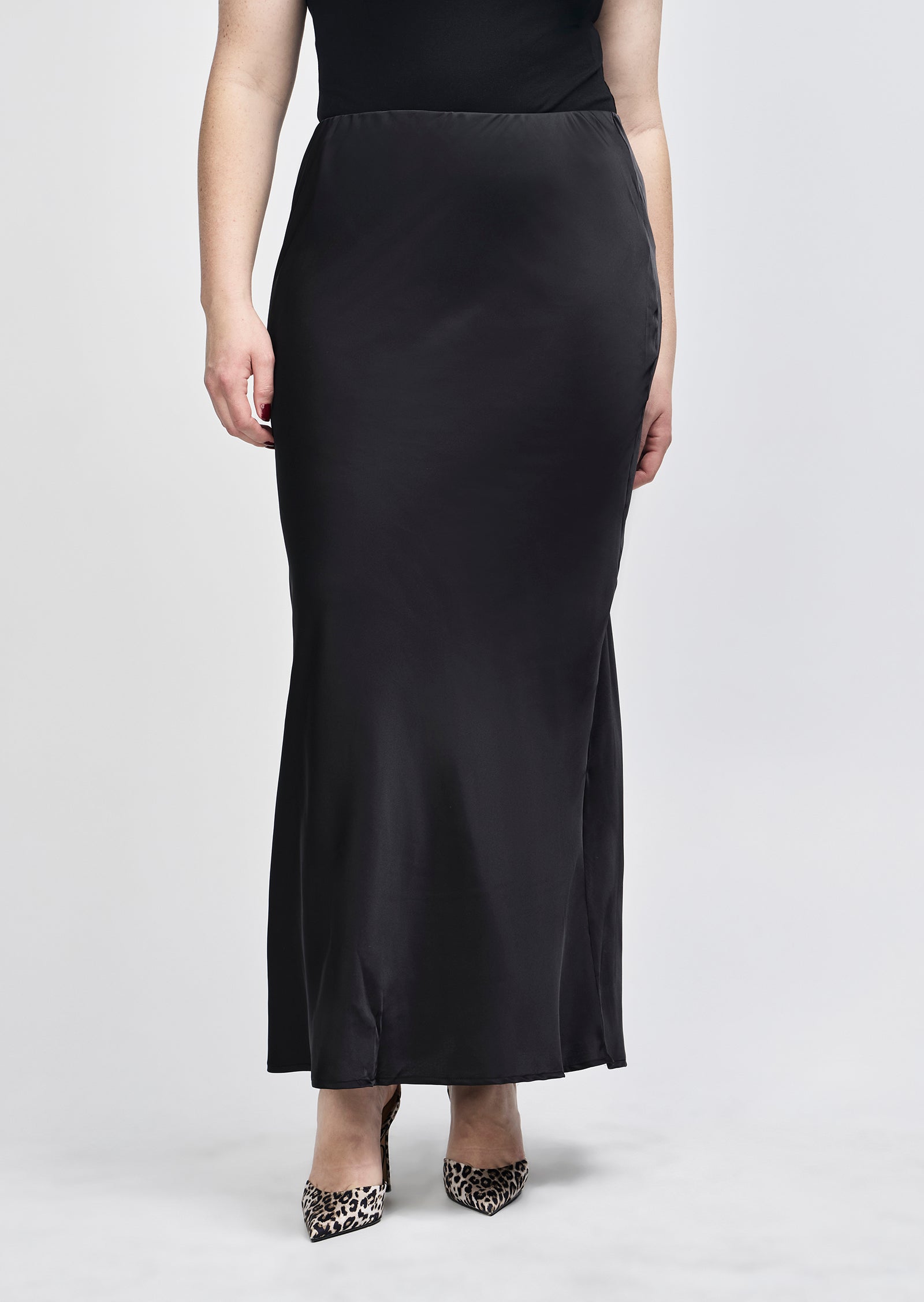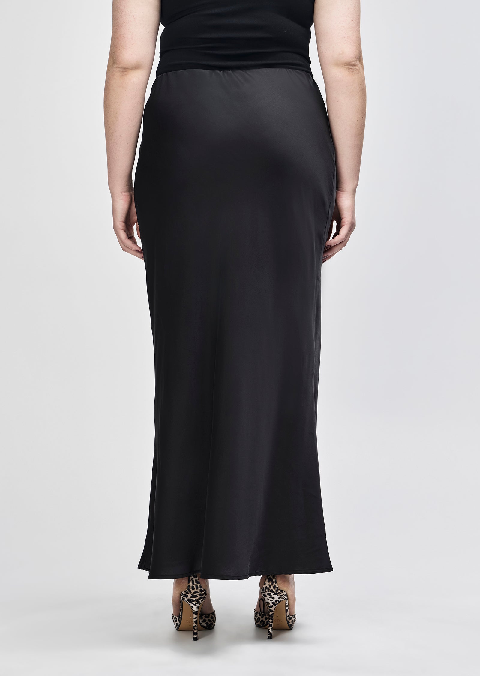 Meet the Zavier Skirt — a softly structured midi made to move with you. Designed for sizes 14–24, this longline silhouette is cut on the bias for a natural drape that flatters the body without clinging.