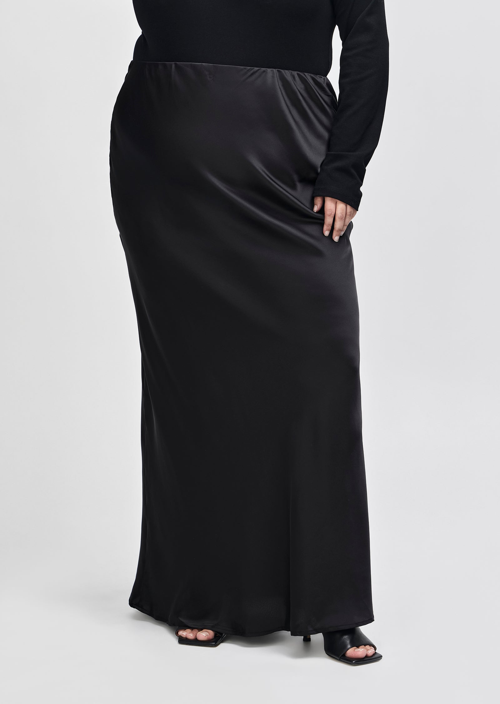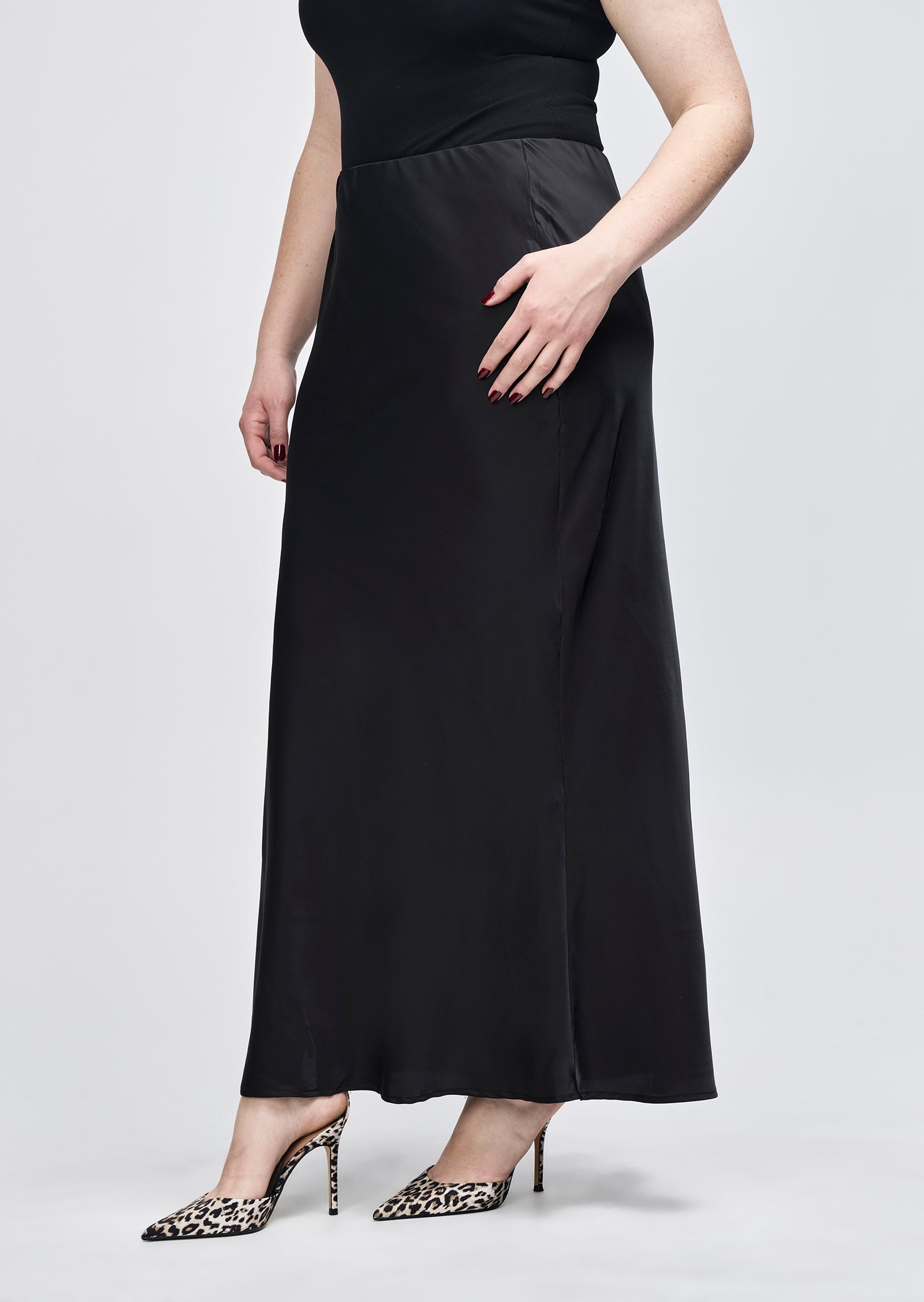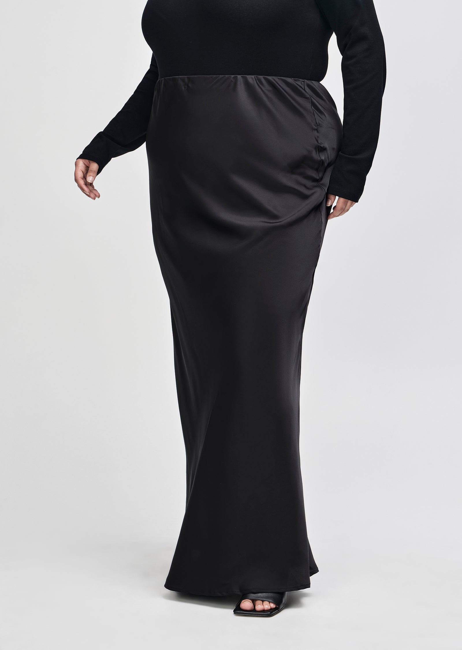 Meet the Zavier Skirt — a softly structured midi made to move with you. Designed for sizes 14–24, this longline silhouette is cut on the bias for a natural drape that flatters the body without clinging.