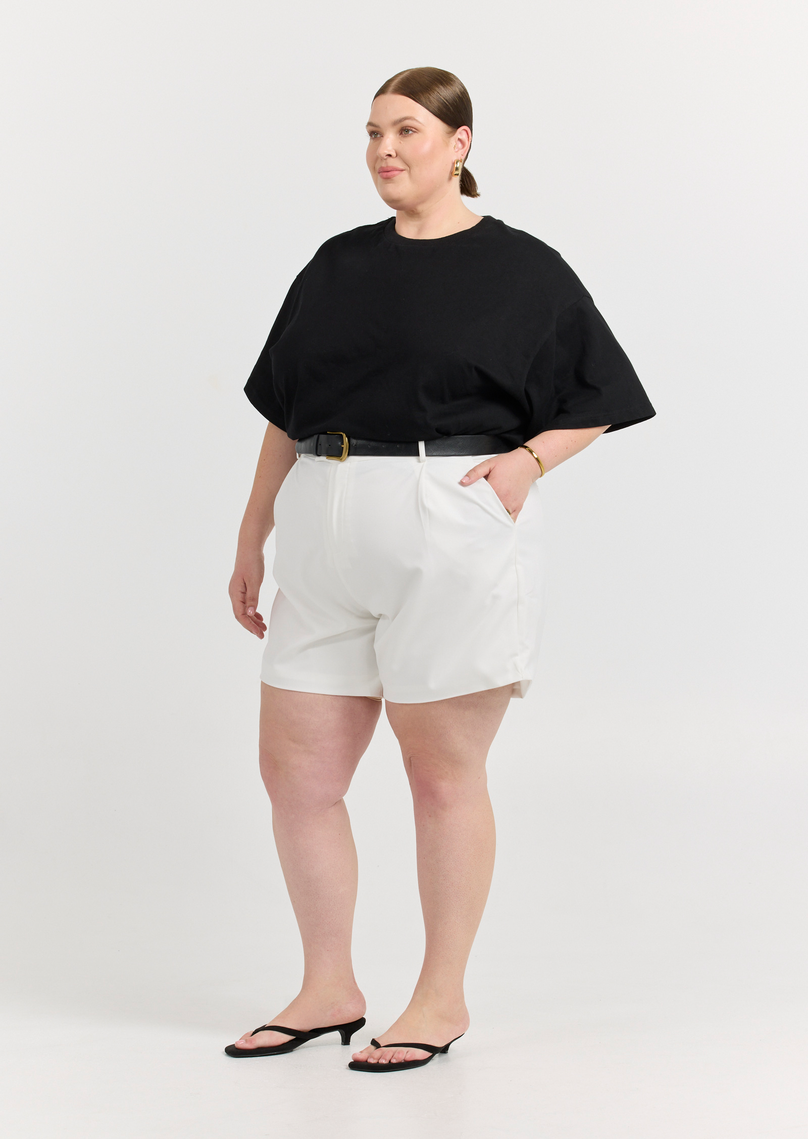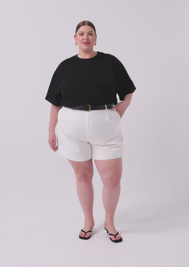 Meet the Nadine Tailored Short - a refined take on structured summer essentials. Made for sizes 14-24, Nadine blends tailoring and ease with a mid-thigh cut that works for desk to dinner.