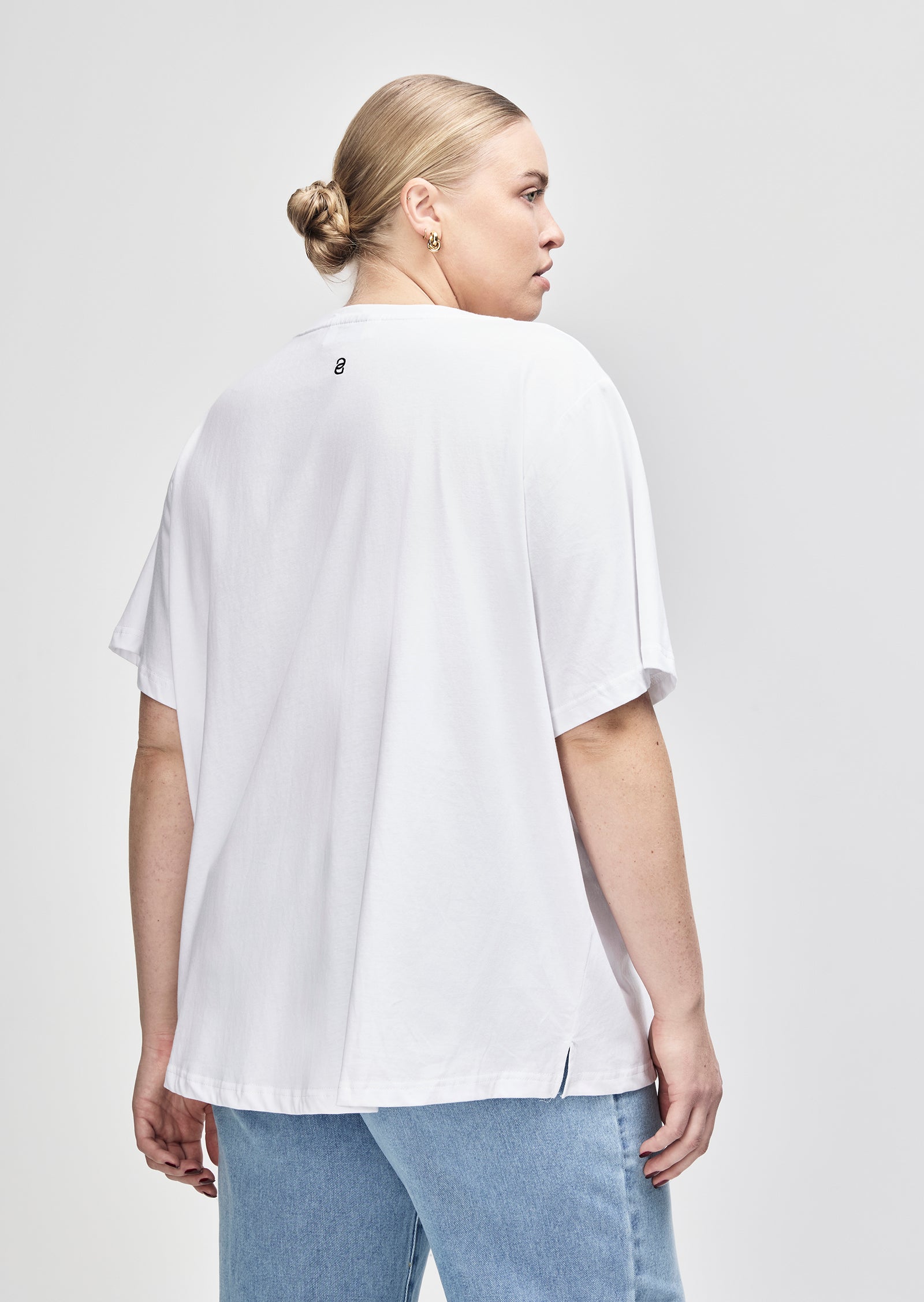 Crafted from soft, breathable cotton, Sabine is finished with a rib neckband for added structure and durability. Subtle hem details, including side seam splits and an extended back tail, add movement and shape without interrupting the simplicity of the design.