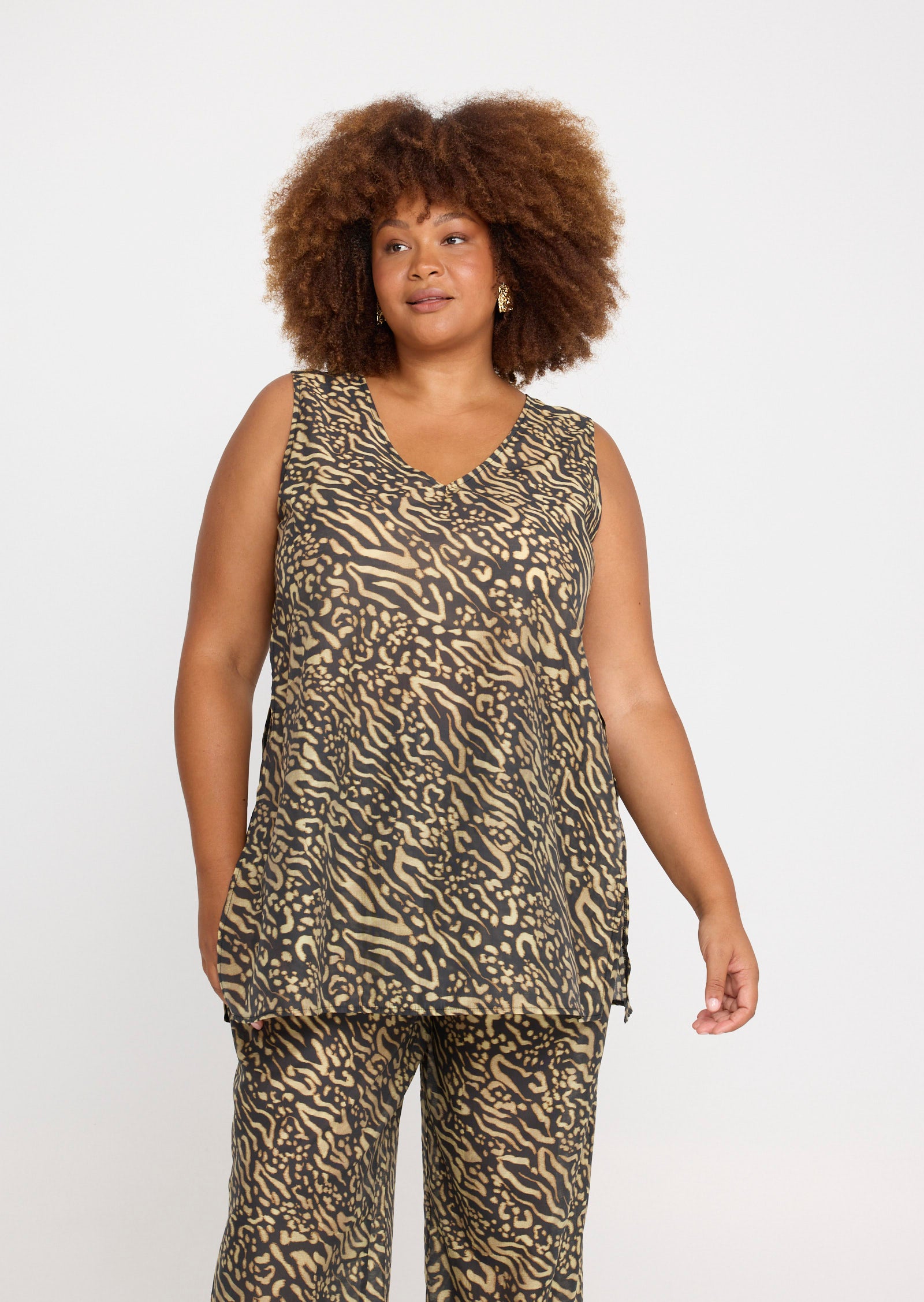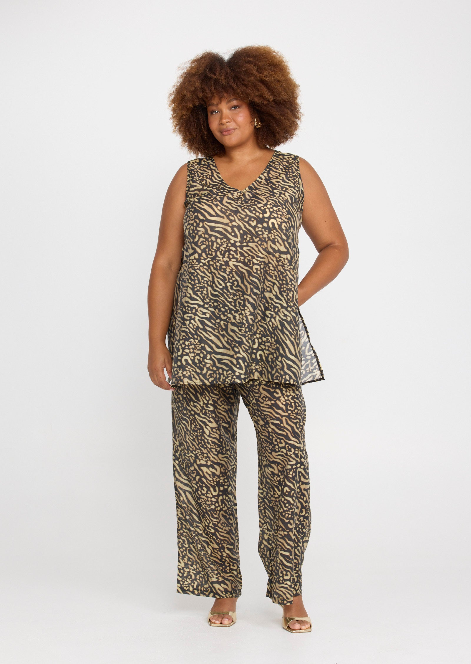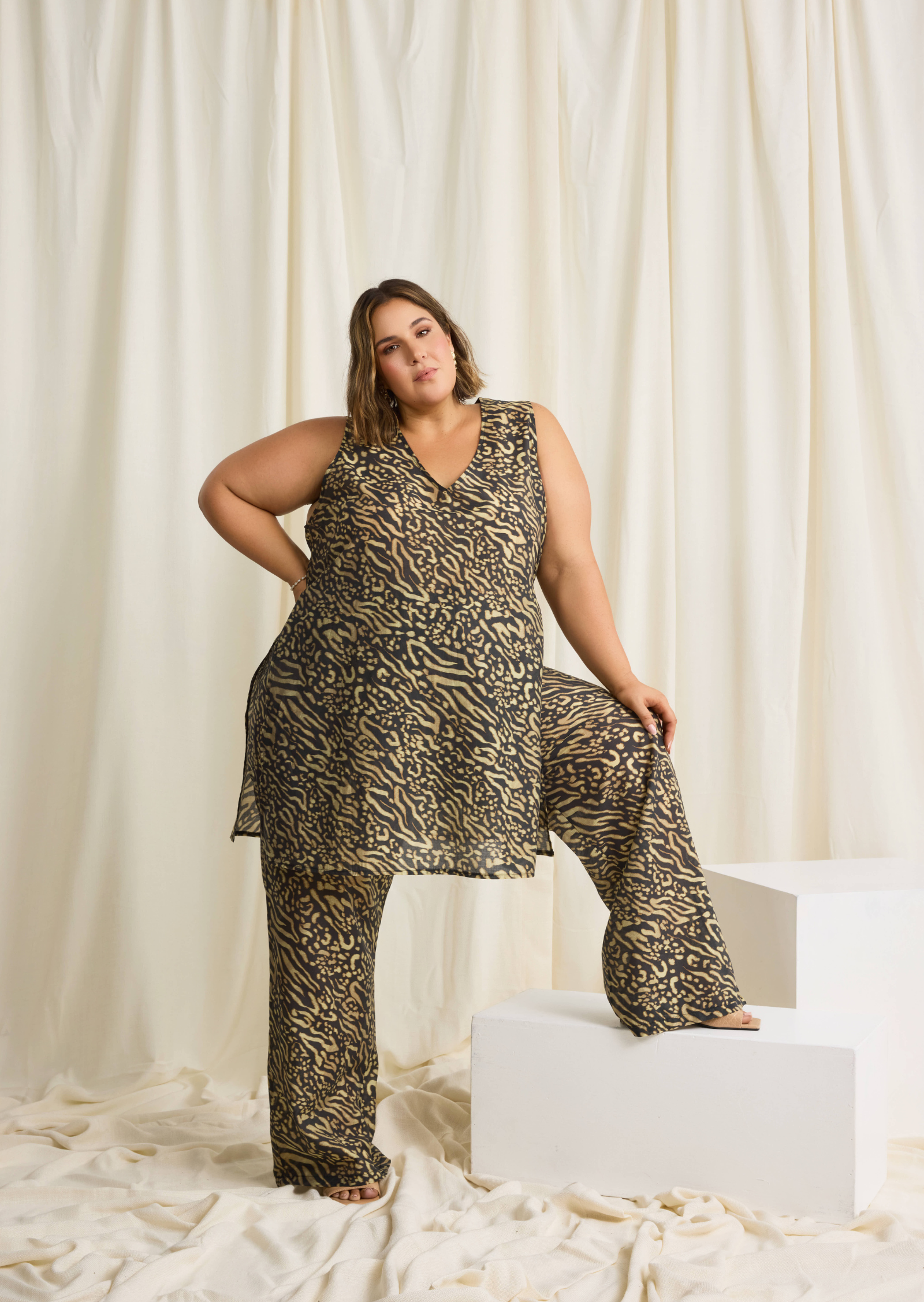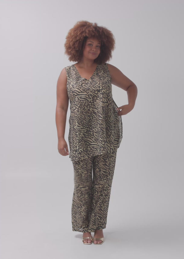 Rendered in a bold animal print, this elevated plus-size top pairs seamlessly with the matching Evi Pants for a coordinated statement or styles back effortlessly with tailored or slim silhouettes.