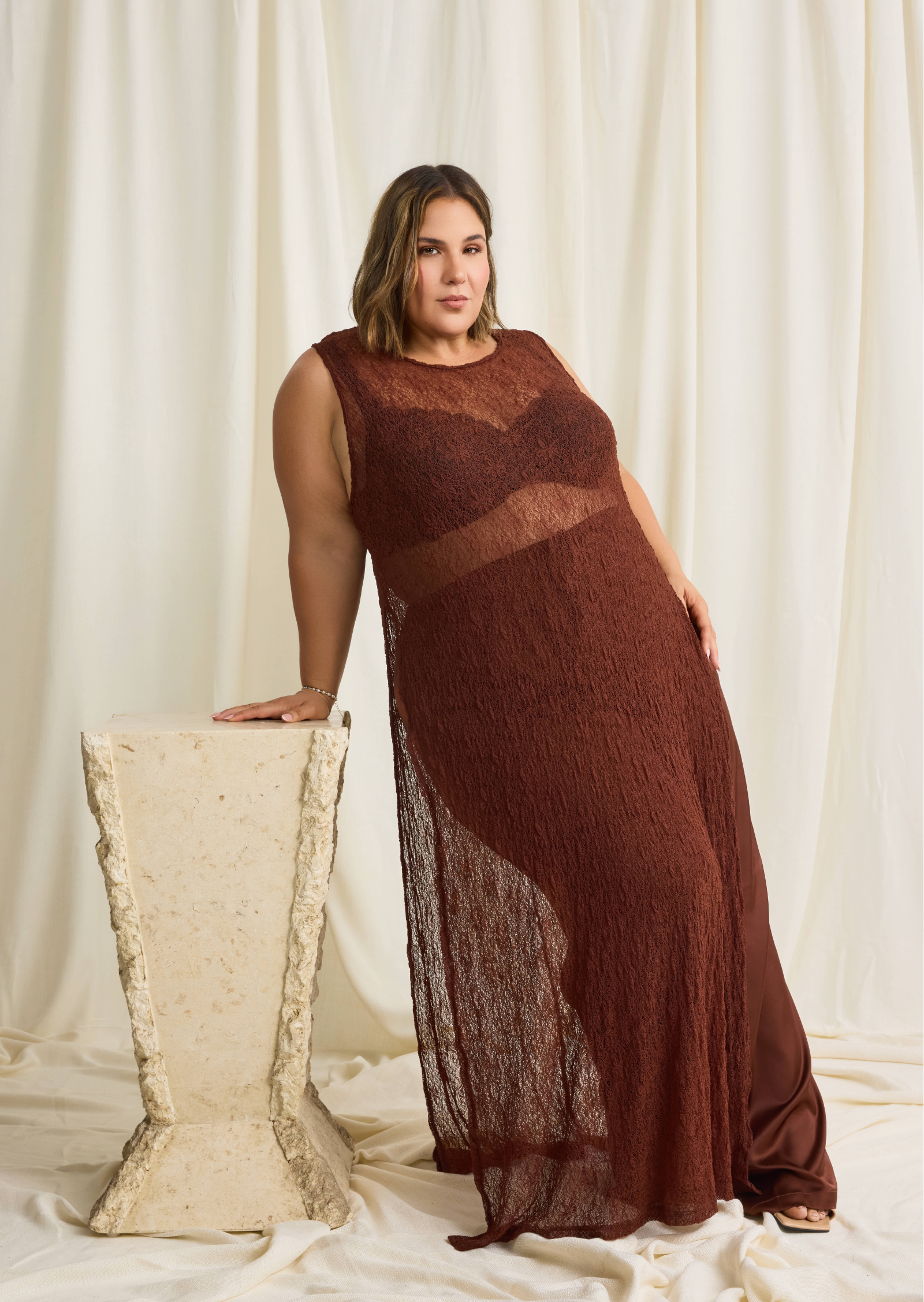 Style it over satin skirts or fluid pants for an elevated evening feel, or layer it with tailored separates for a modern, directional outfit.