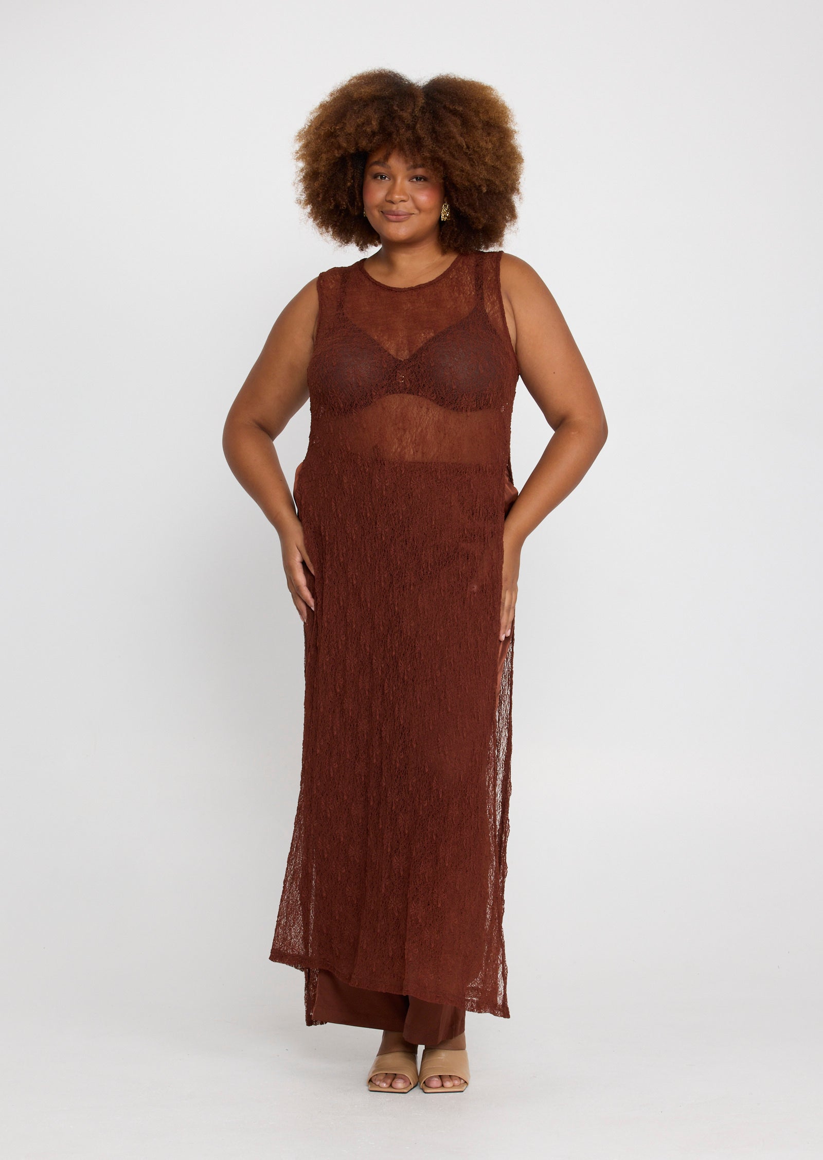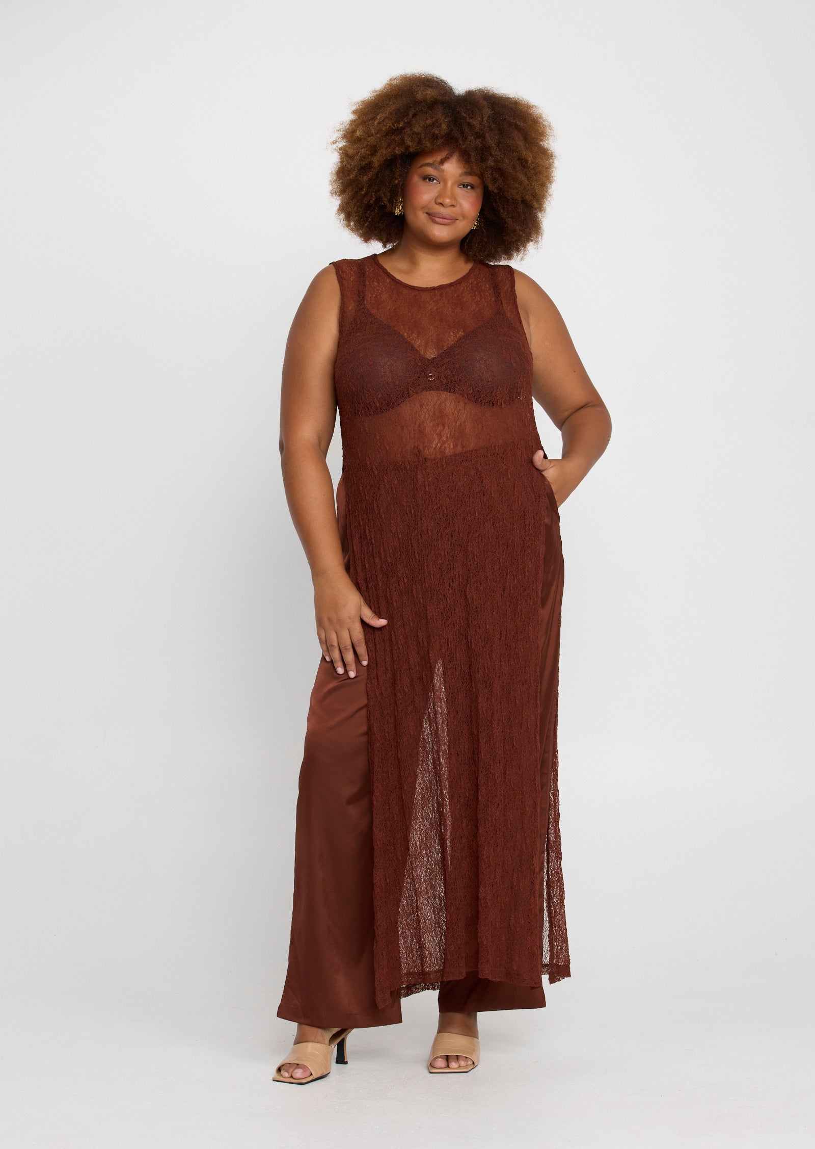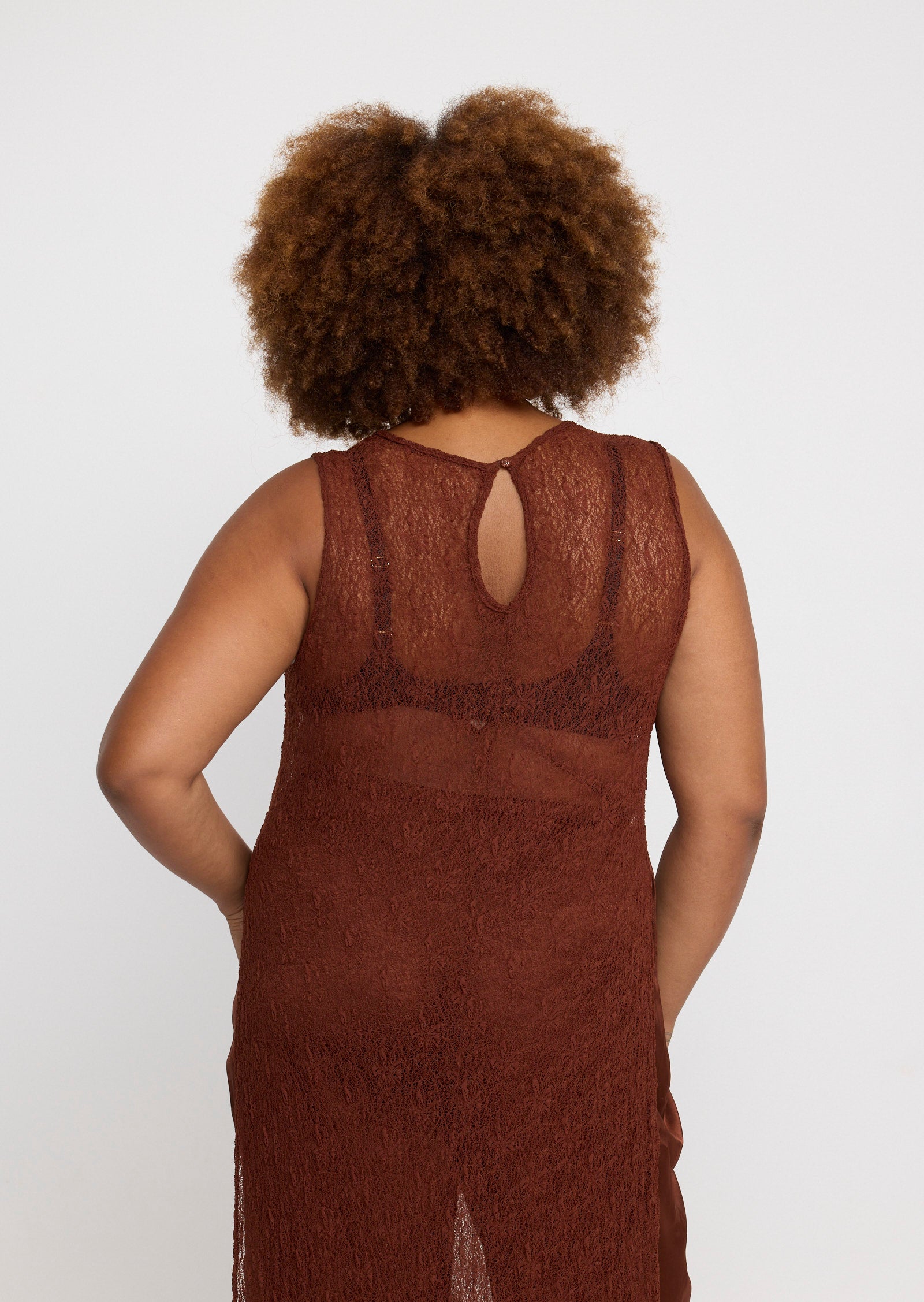 Designed in a lightweight mesh fabrication, Jolie features a classic round neckline with a button and loop keyhole closure at the back. Side splits add movement through the hem, while the versatile construction allows the front and back panels to be tied at the side for a subtle, considered detail that elevates the overall look.