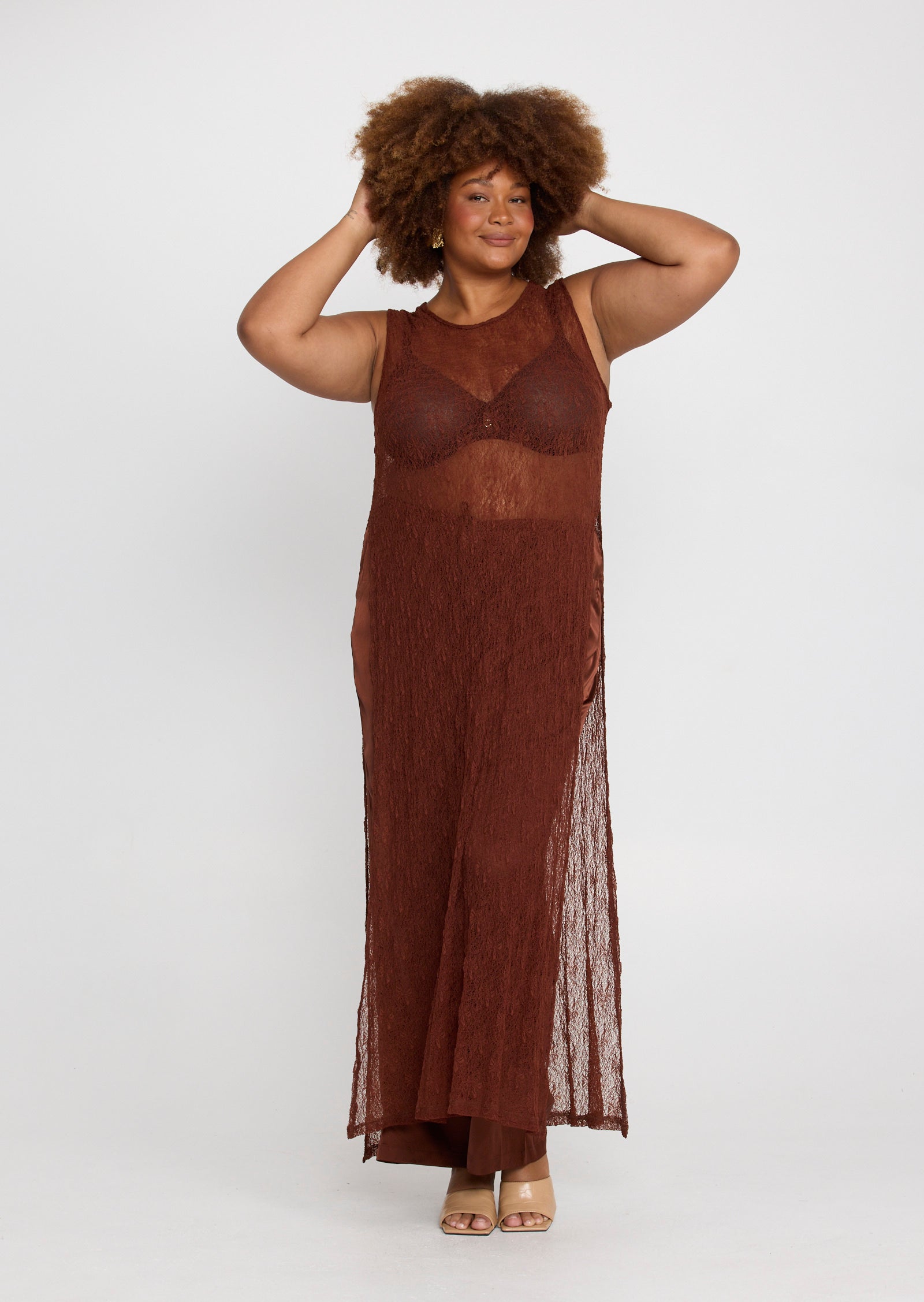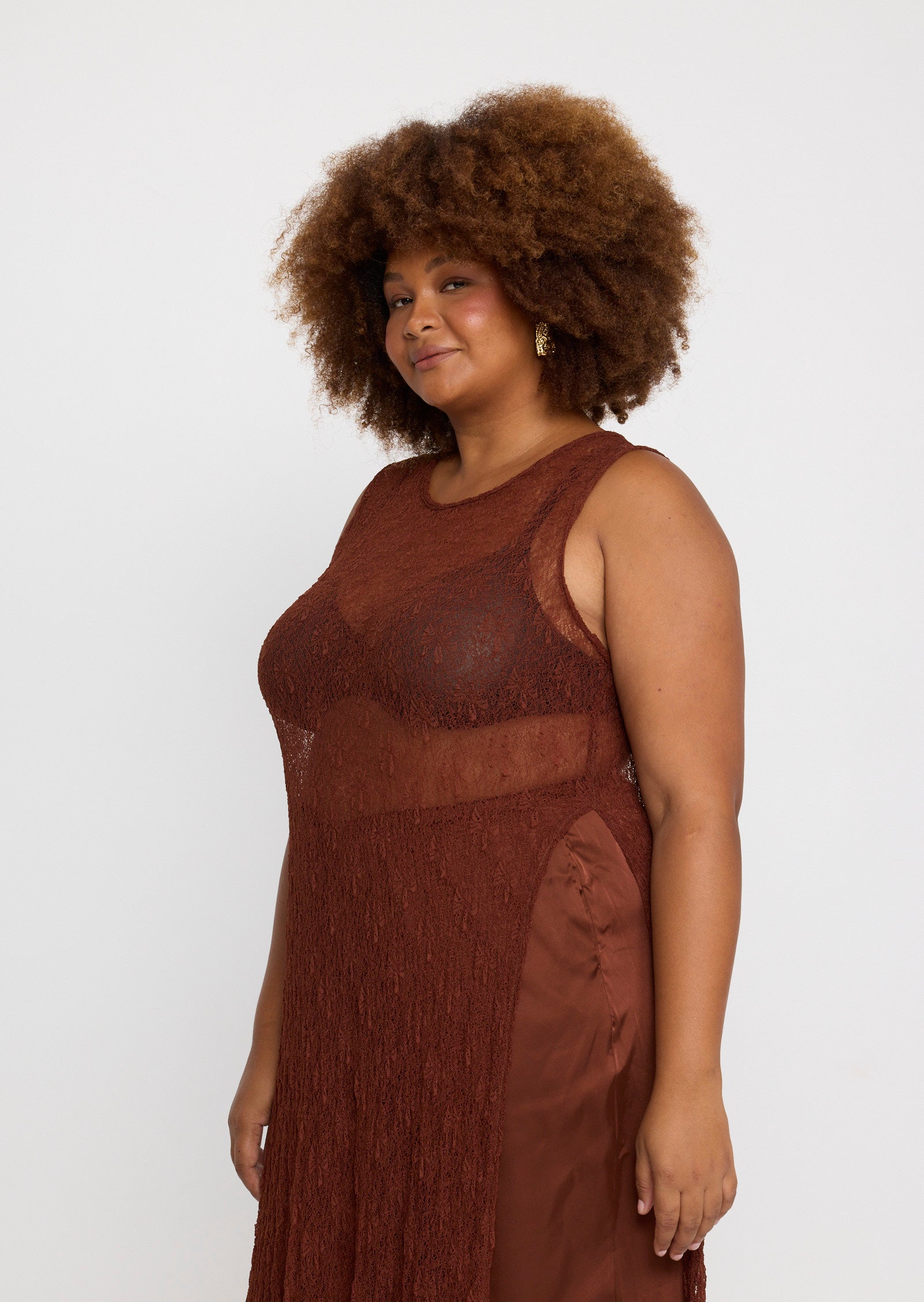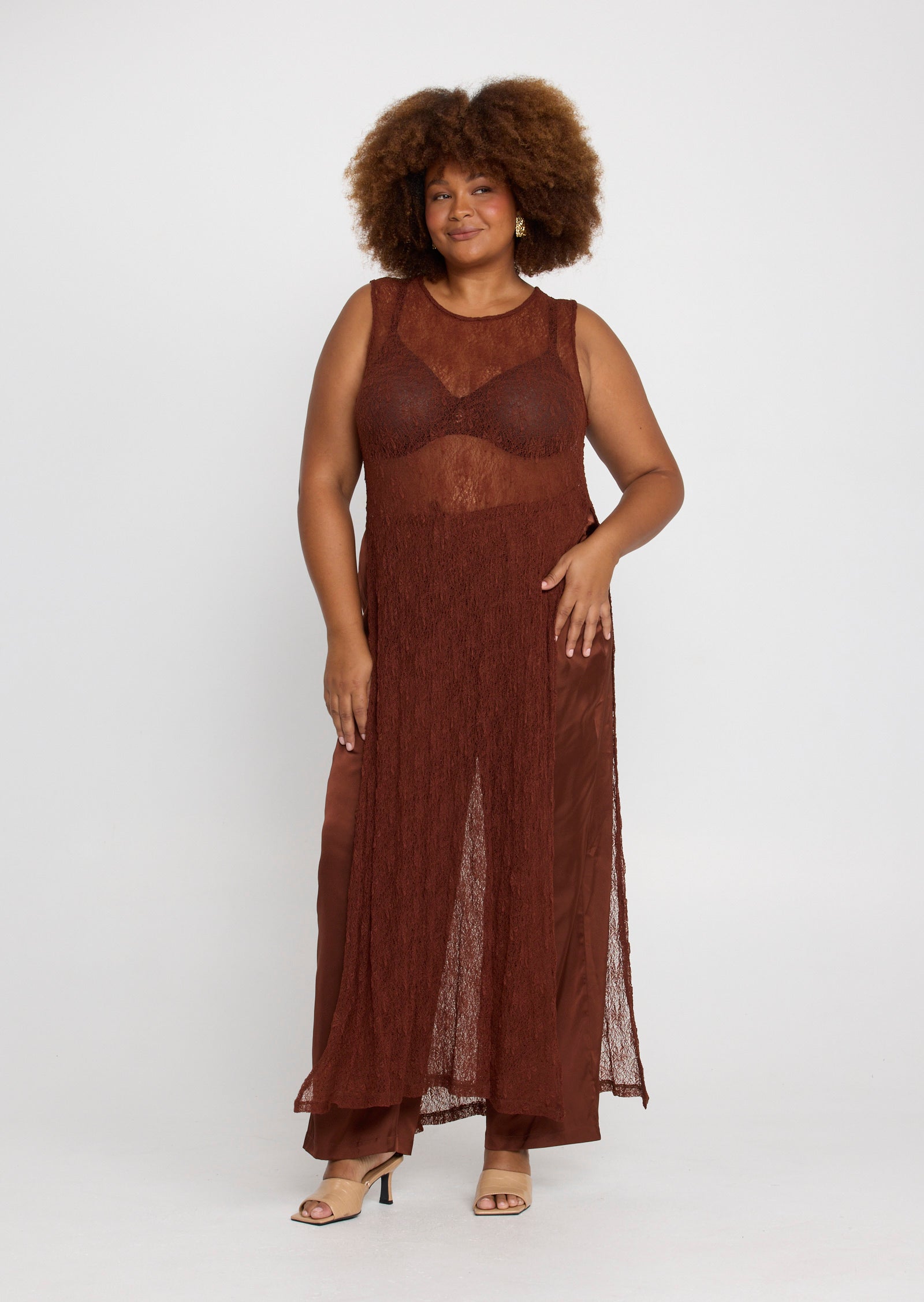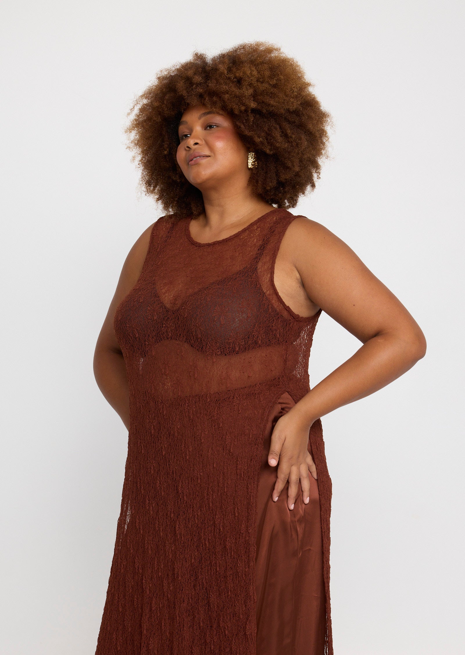 Designed in a lightweight mesh fabrication, Jolie features a classic round neckline with a button and loop keyhole closure at the back. Side splits add movement through the hem, while the versatile construction allows the front and back panels to be tied at the side for a subtle, considered detail that elevates the overall look.