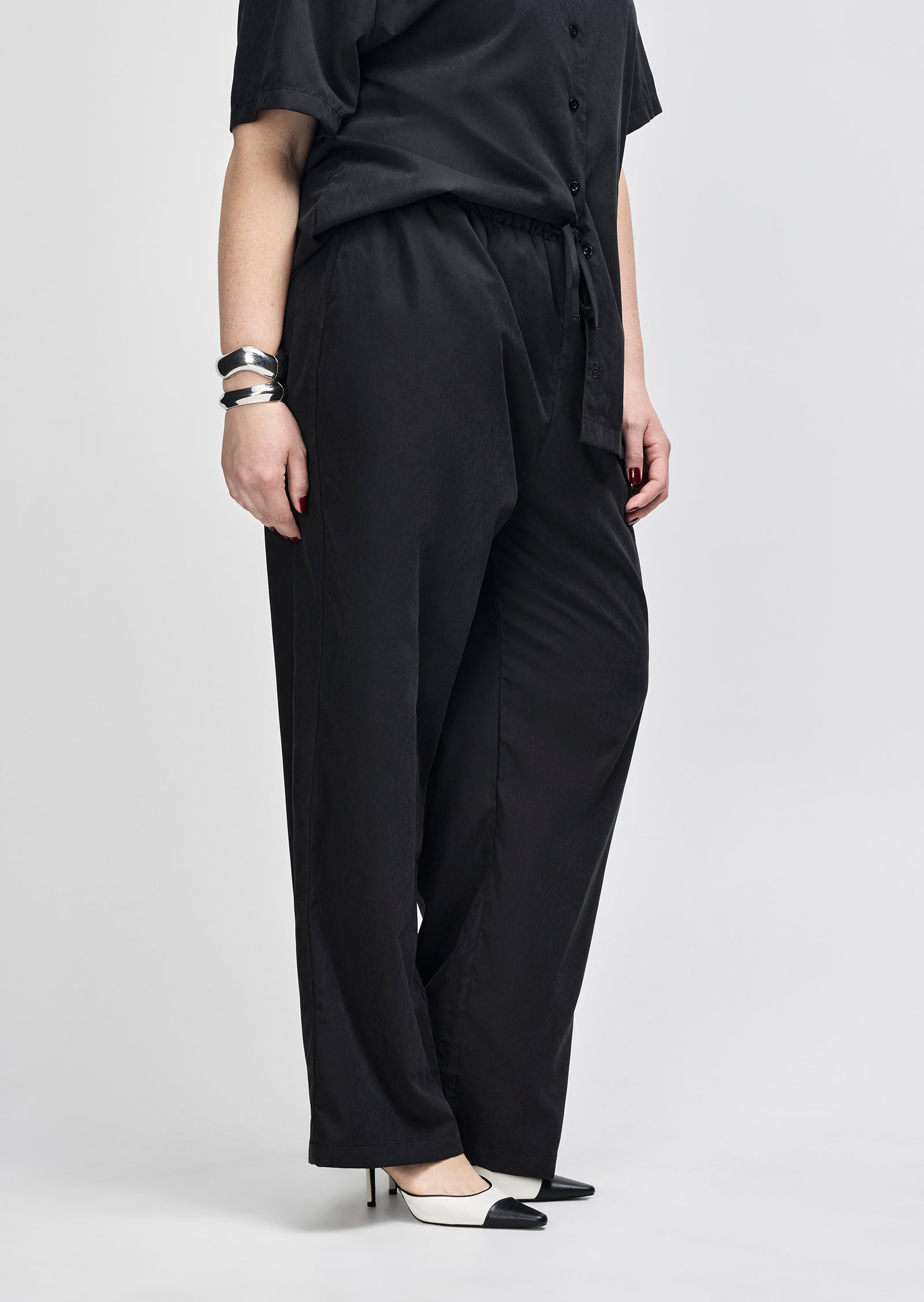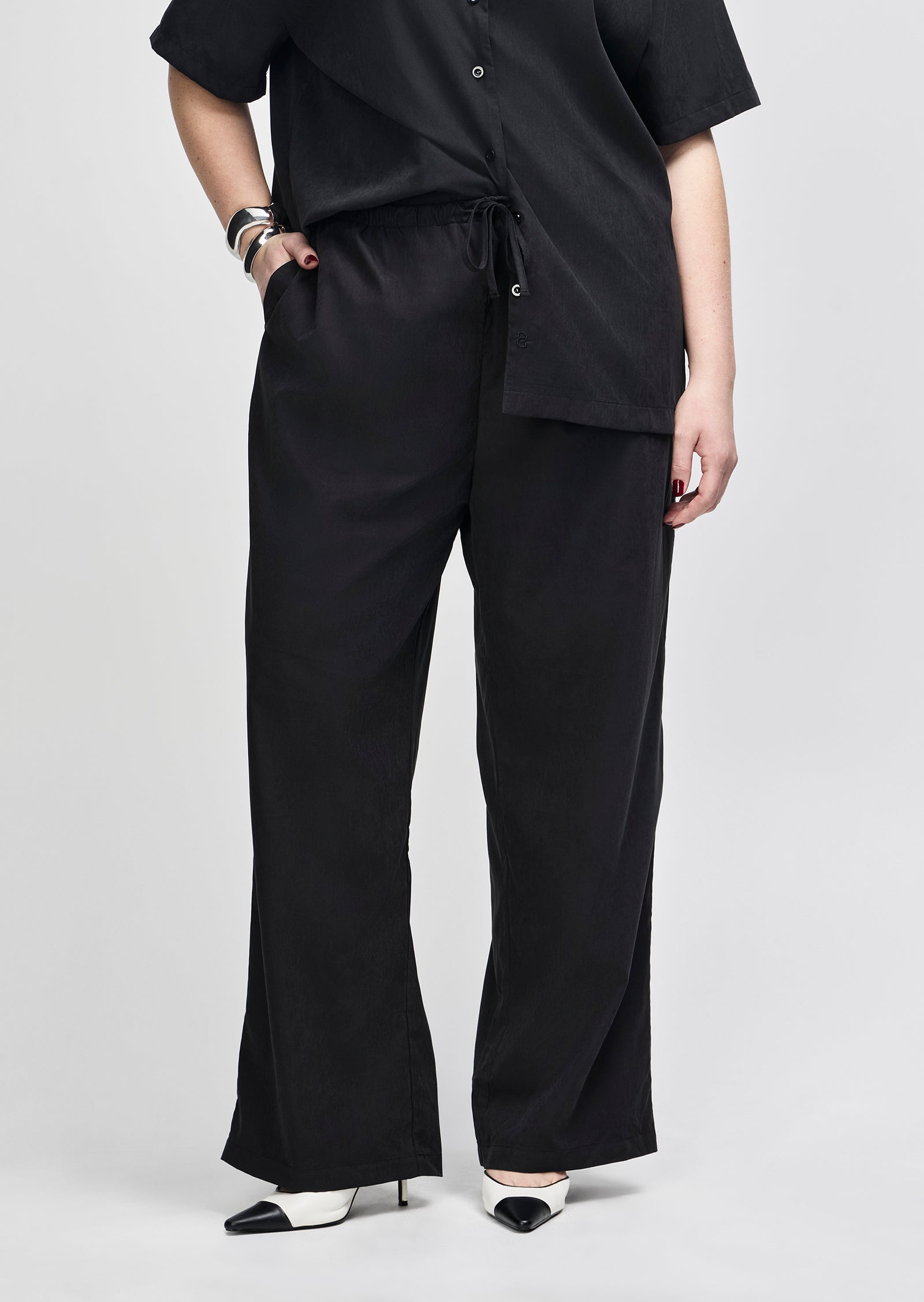 Meet the Theo Pants – an everyday essential designed for movement and ease. Featuring a high elasticated waistband with a self-fabric drawcord, they offer a comfortable, adjustable fit that flatters the waist while allowing effortless wear.